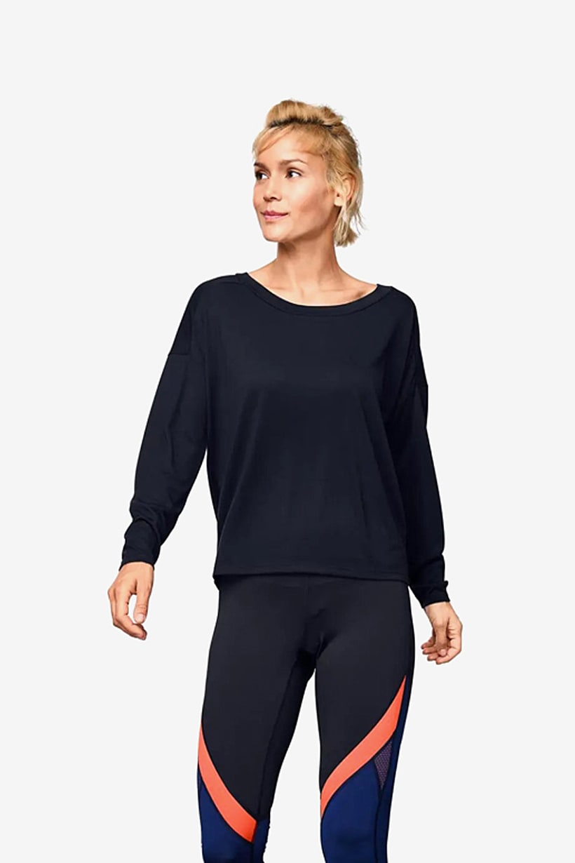 | descriptionOriginal | Sportswear Type : T-Shirt, Sleeve Length : Long Sleeve, Occasion : Sport, Care : Machine washable, Ideal For : Women, Types of Neckline & Collar : Round neckline, Fabrics : 35% Viscose, 65% Polyester, Pattern & Print : Plain/Solid, Types of Sleeve : Longsleeve, Type of Sport : Training, Types of Closures : Pullover, Types of Hem : Straight hem, Color Family : Navy Blue, |
