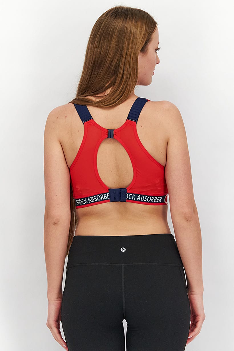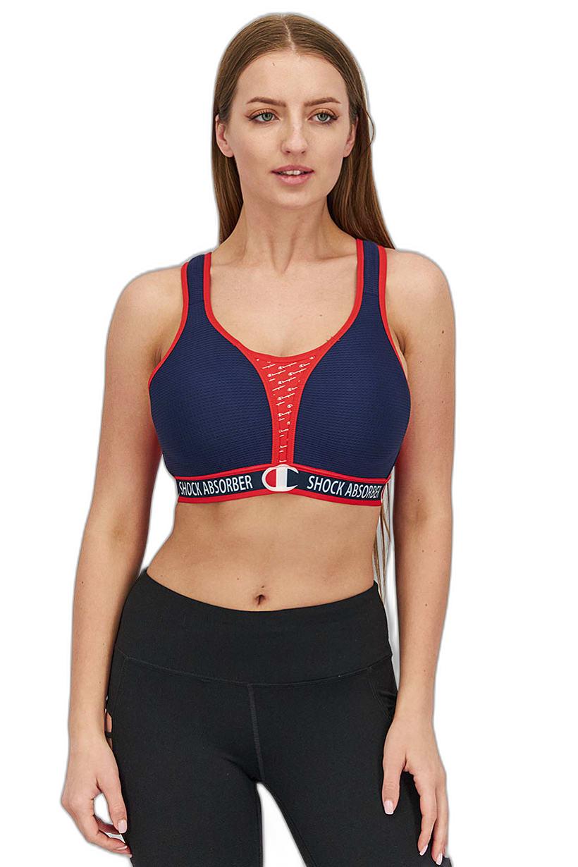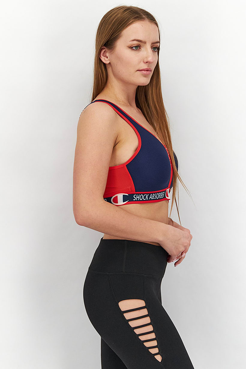 Women Clothing, Sportswear, women embroidered logo padded sports bra navy and red