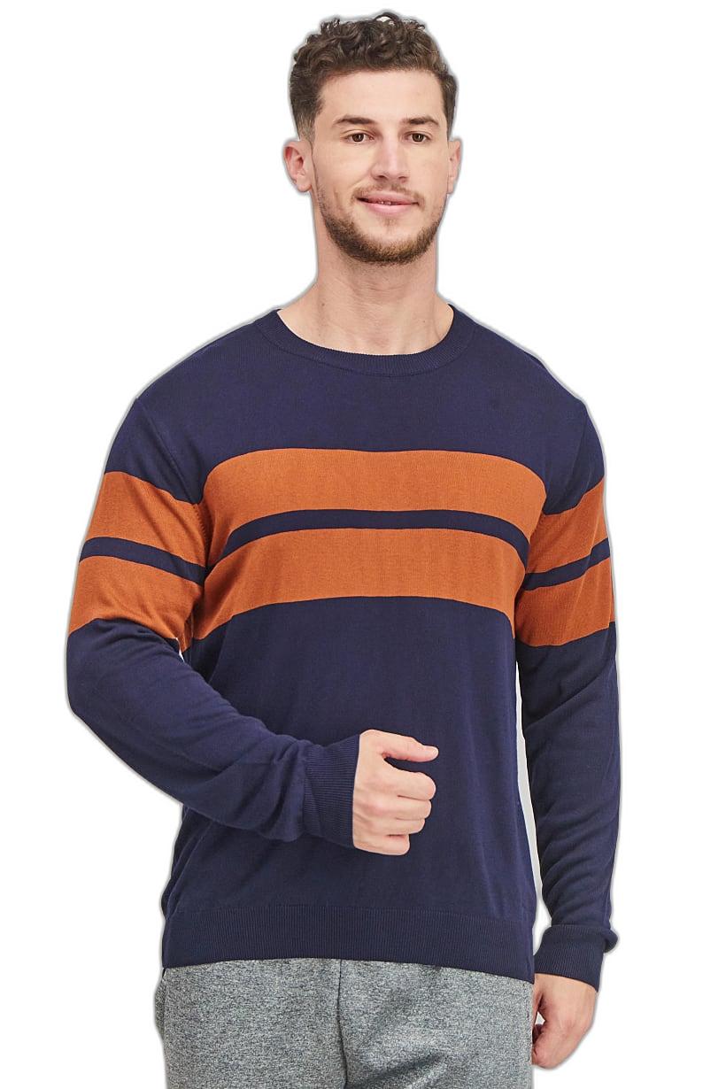 | sub_Categories | Men Clothing, Sweaters & Cardigans, men crew neck stripe long sleeve sweater navy and rust combo |