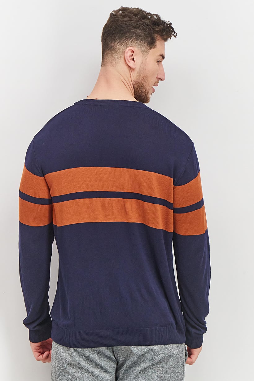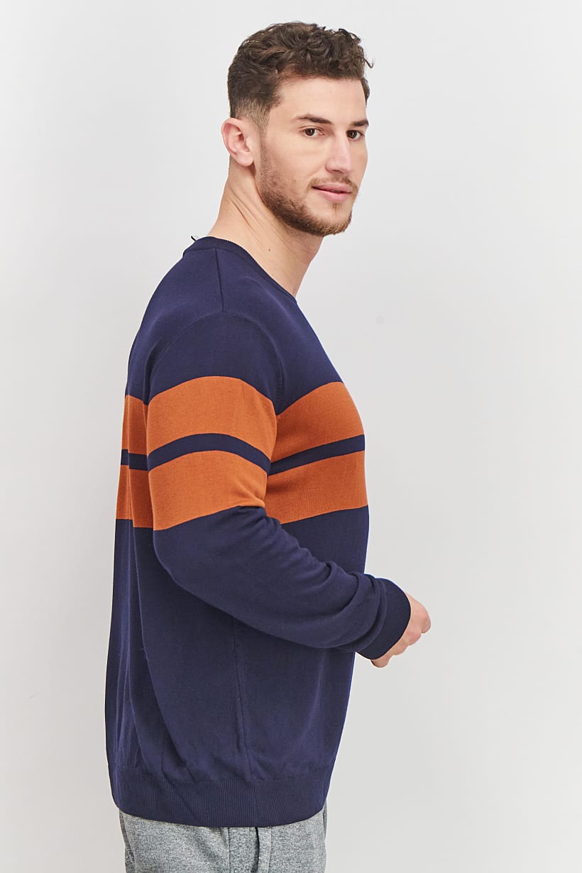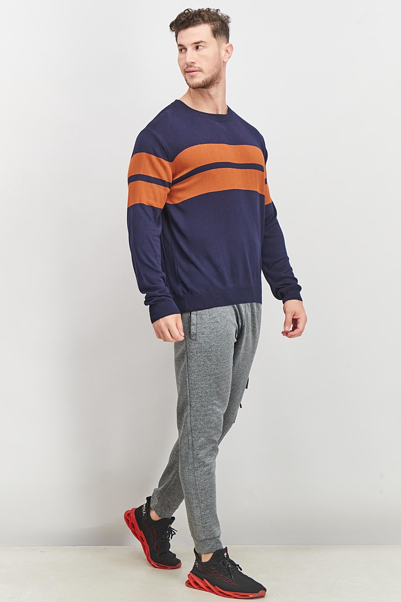| nameOriginal | Men Crew Neck Stripe Long Sleeve Sweater, Navy and Rust Combo |