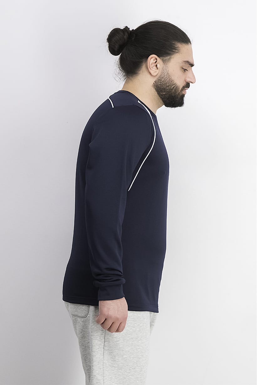 Care : Machine washable, Fit : Sportswear Fit, Size shown : US, Sleeve Length : Long Sleeve, Thickness : Light, Type of Neckline & Collar : Crew neckline , Type of Sport : Training, Disclaimer : Product color may slightly vary due to photographic lighting sources or your monitor settings., Fabrics : 100% Polyester, Pattern & Print : Embroidered logo, Sportswear Type : T-Shirt, Types of Closures : Pullover, Color Family : Navy Blue,
