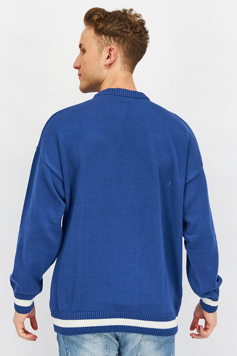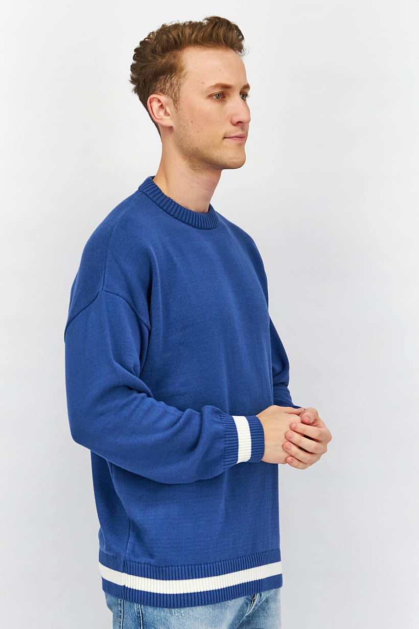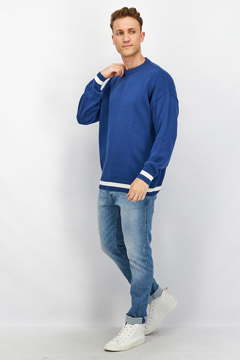 Men Oversized Knitted Contrast Sweater, Navy and White