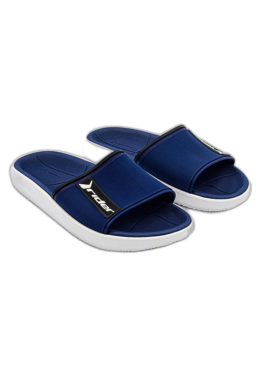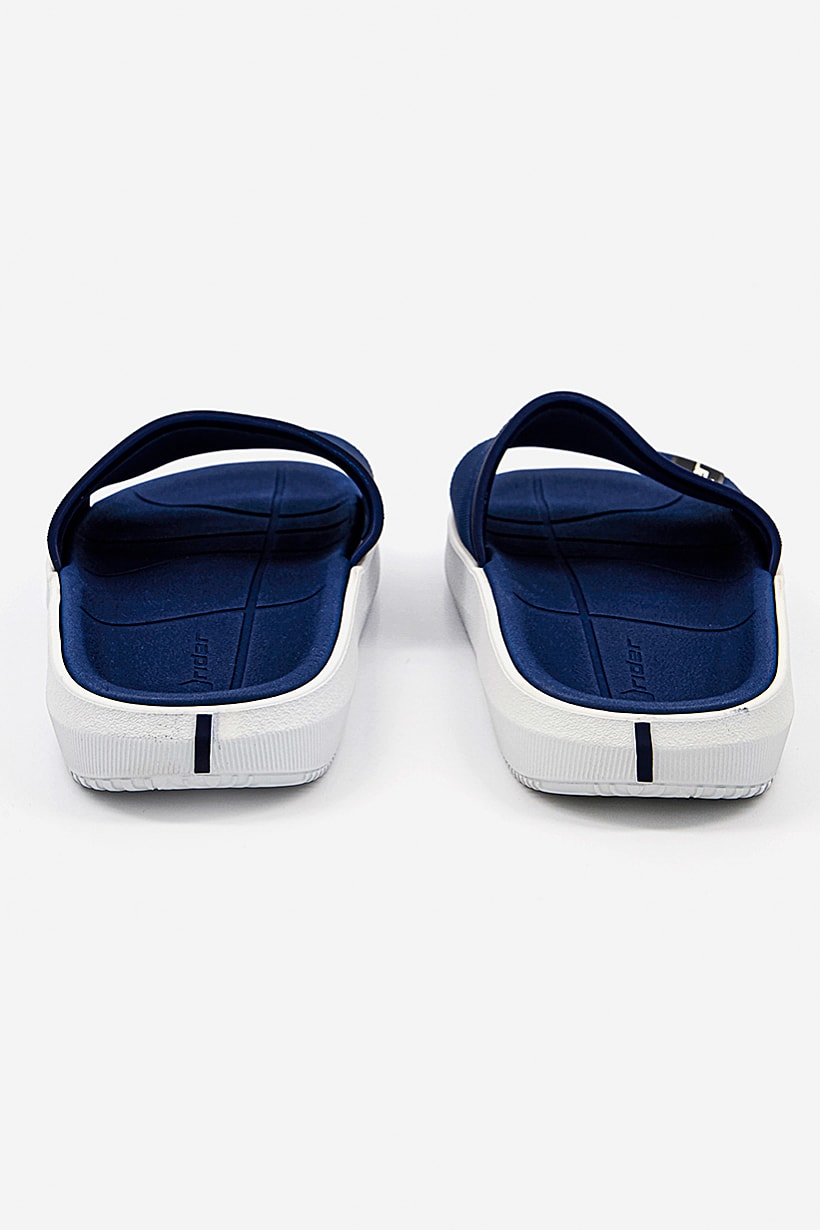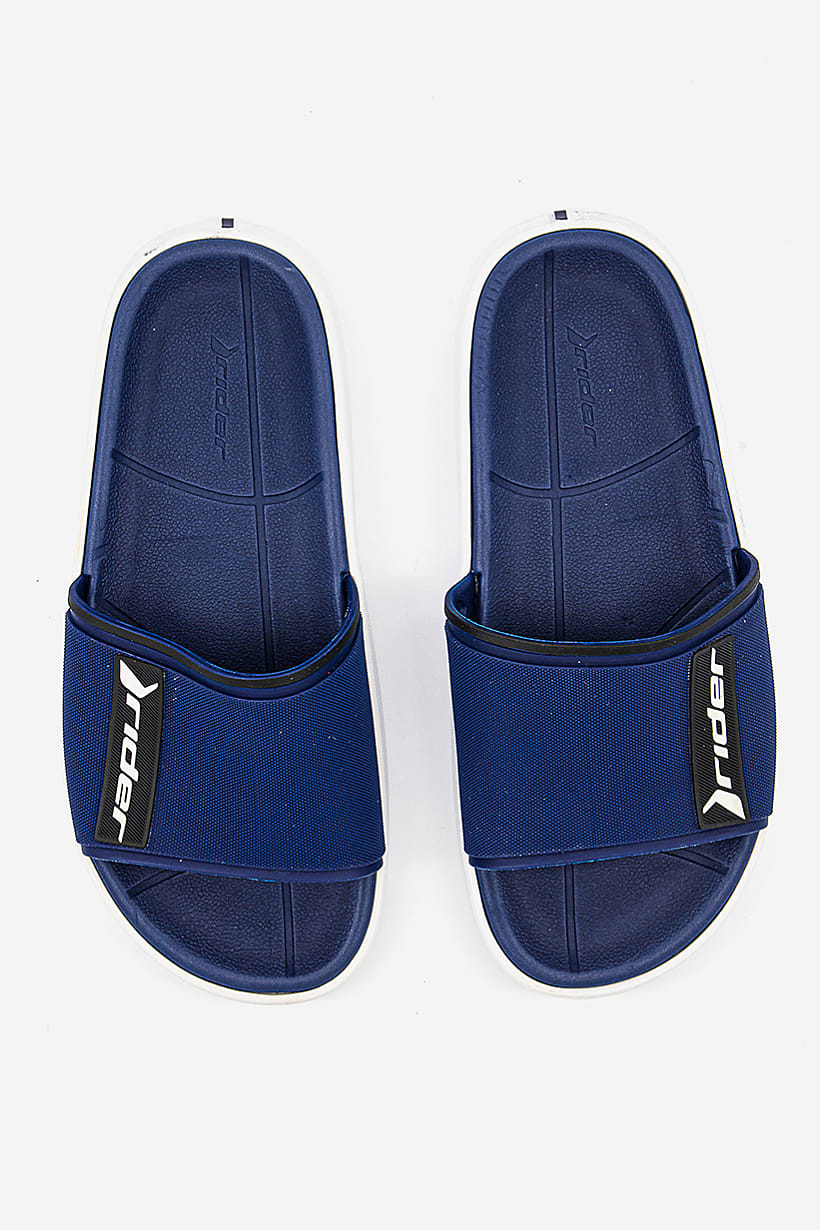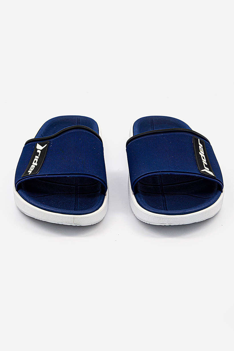 | sub_Categories | Shoes, Slides & Slippers, men brand logo slip on slides navy and white |
