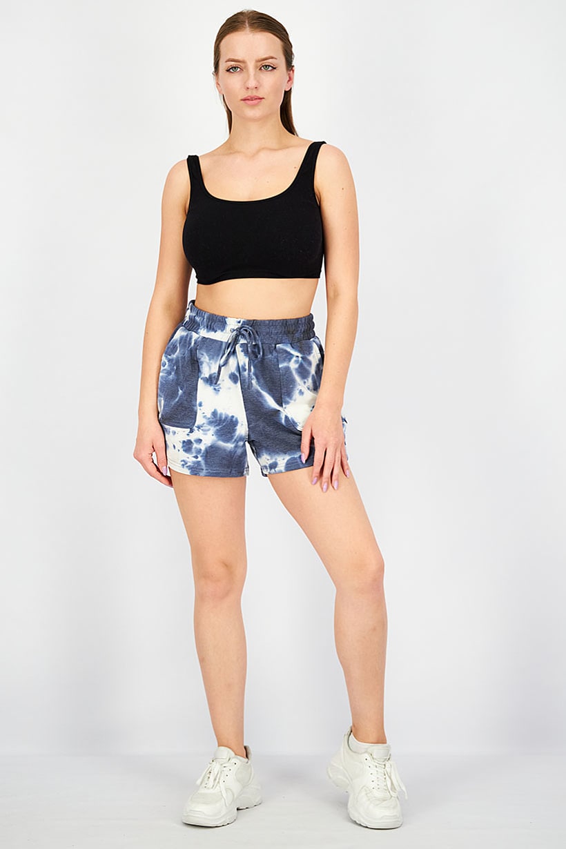 Navy and White Tie Dye Women’s Sport Shorts with Drawstring.