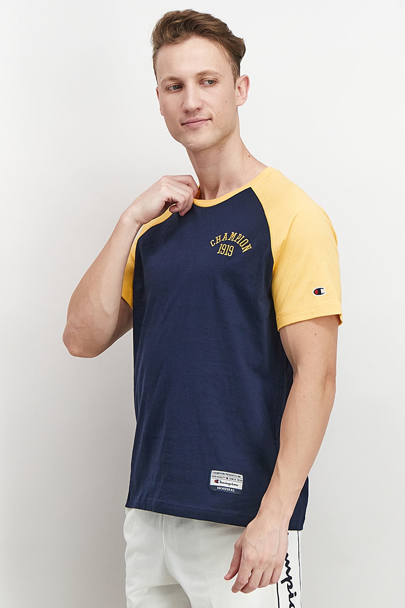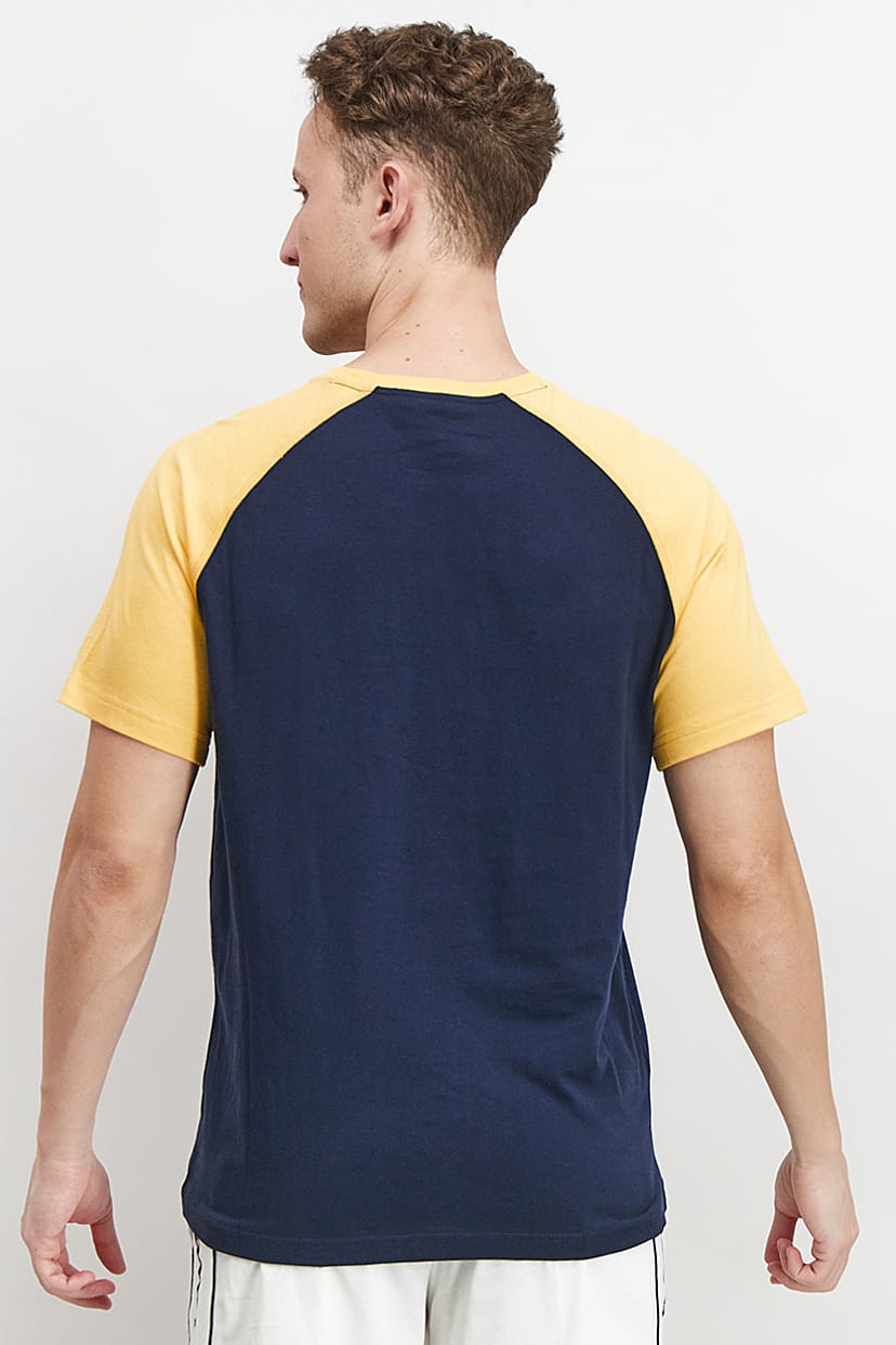 | nameOriginal | Men Sport Fit Short Sleeve Embroidered Logo Tee, Navy and Yellow |