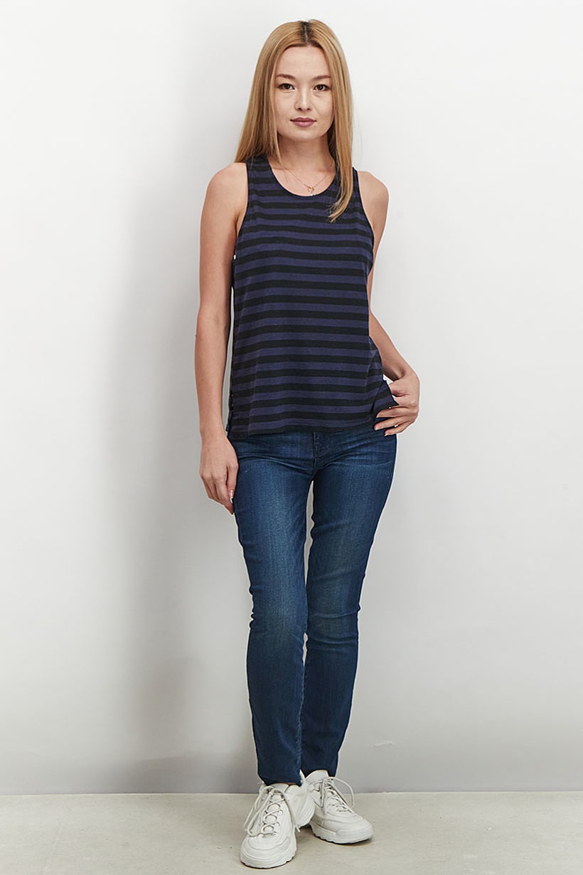 | sub_Categories | Women Clothing, Tops & Tees, women round neck sleeveless stripe tank top navy blue and black |