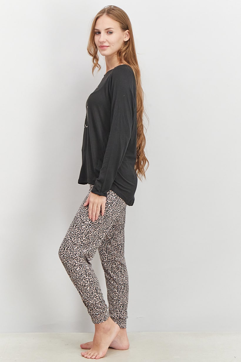 | nameOriginal | Women 2 Piece PrinT-shirt And Pants Set, Navy Blue and Tan |