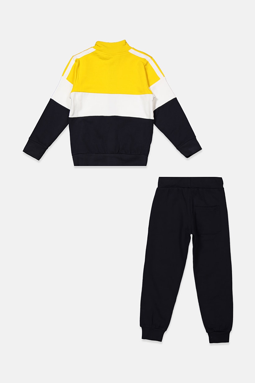 Navy Blue and Yellow 2-Piece Sweatshirt and Jogger Set for Boys with Mock Neck and Full Zip.