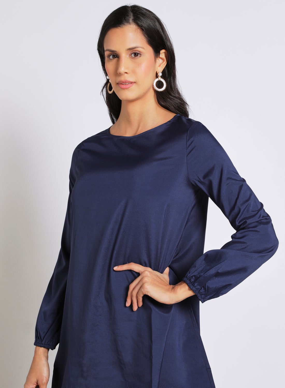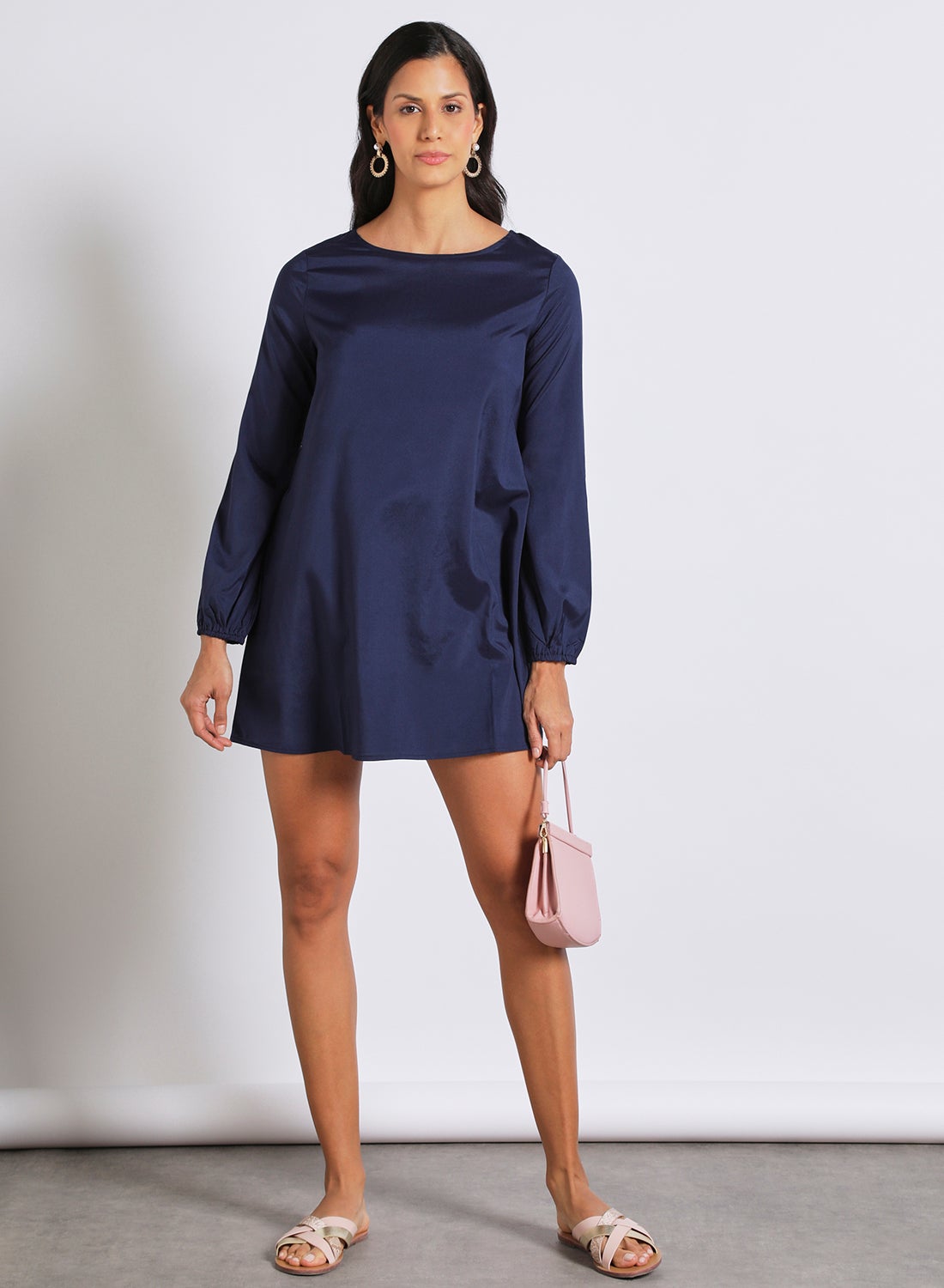 | nameOriginal | Casual Polyester Blend Long Sleeve Mini Dress With Boat Neck Navy Blue |