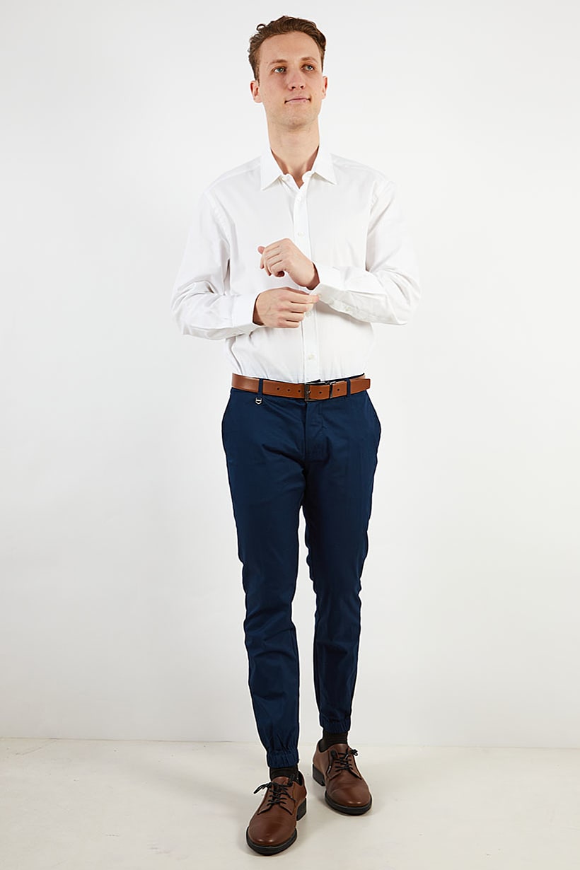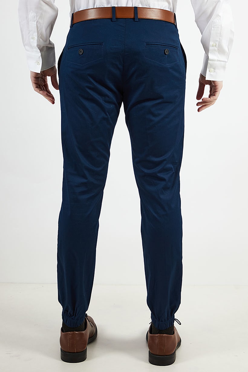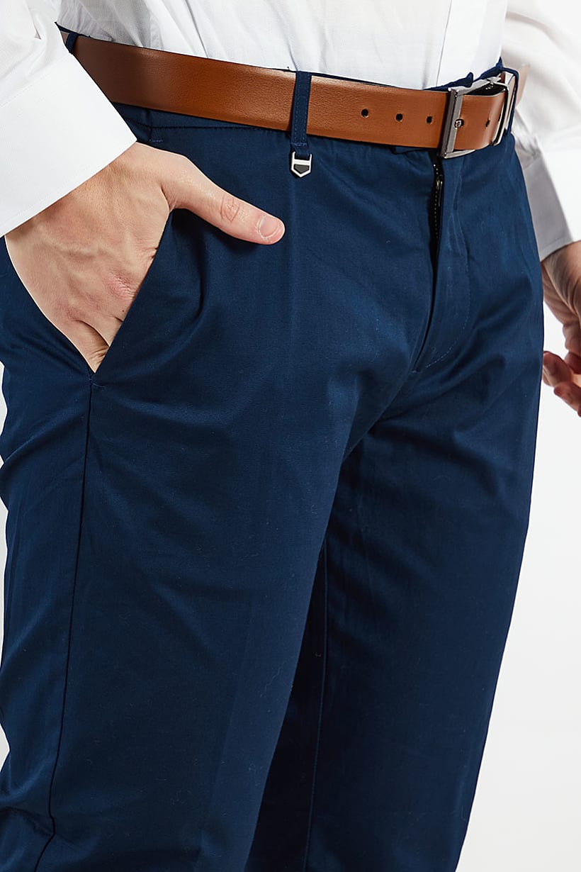 Navy Blue Chino Pants for Men with Four Pockets and Skinny Fit.