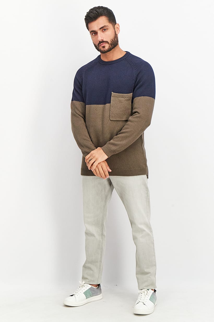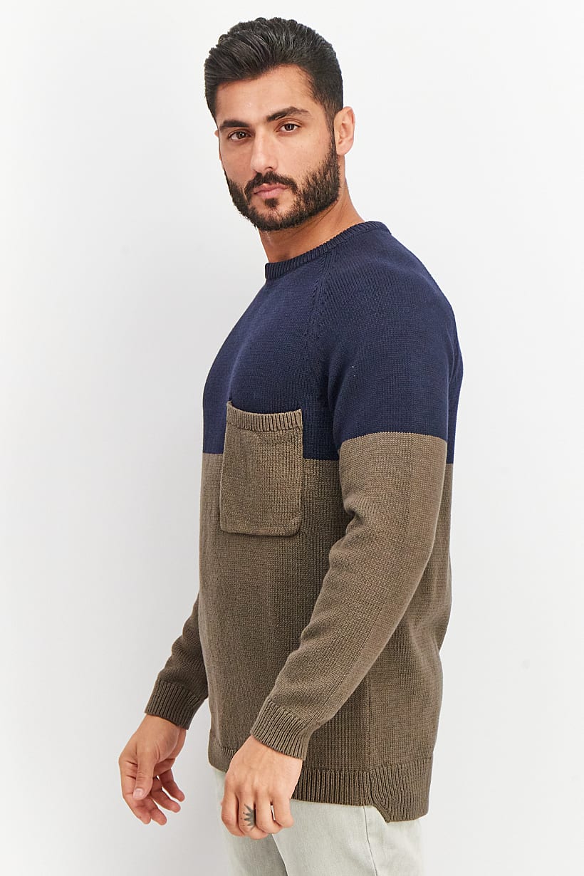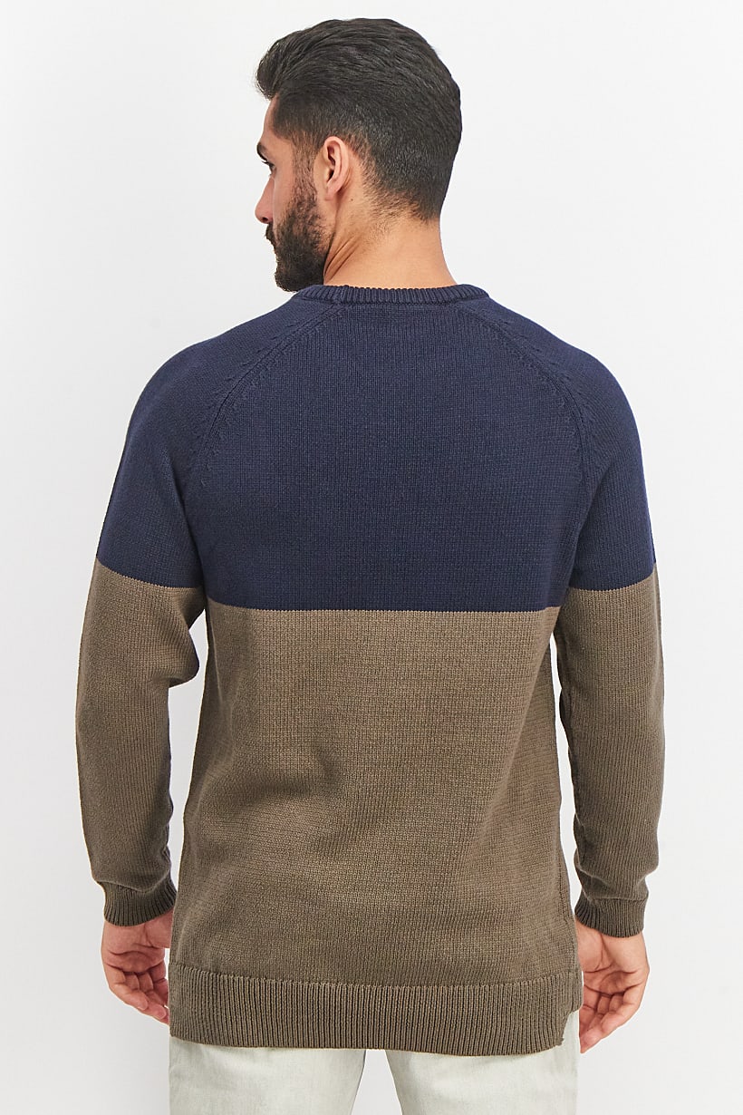 | nameOriginal | Men Round Neck Long Sleeve Knitted Sweater, Navy Blue/Combat |