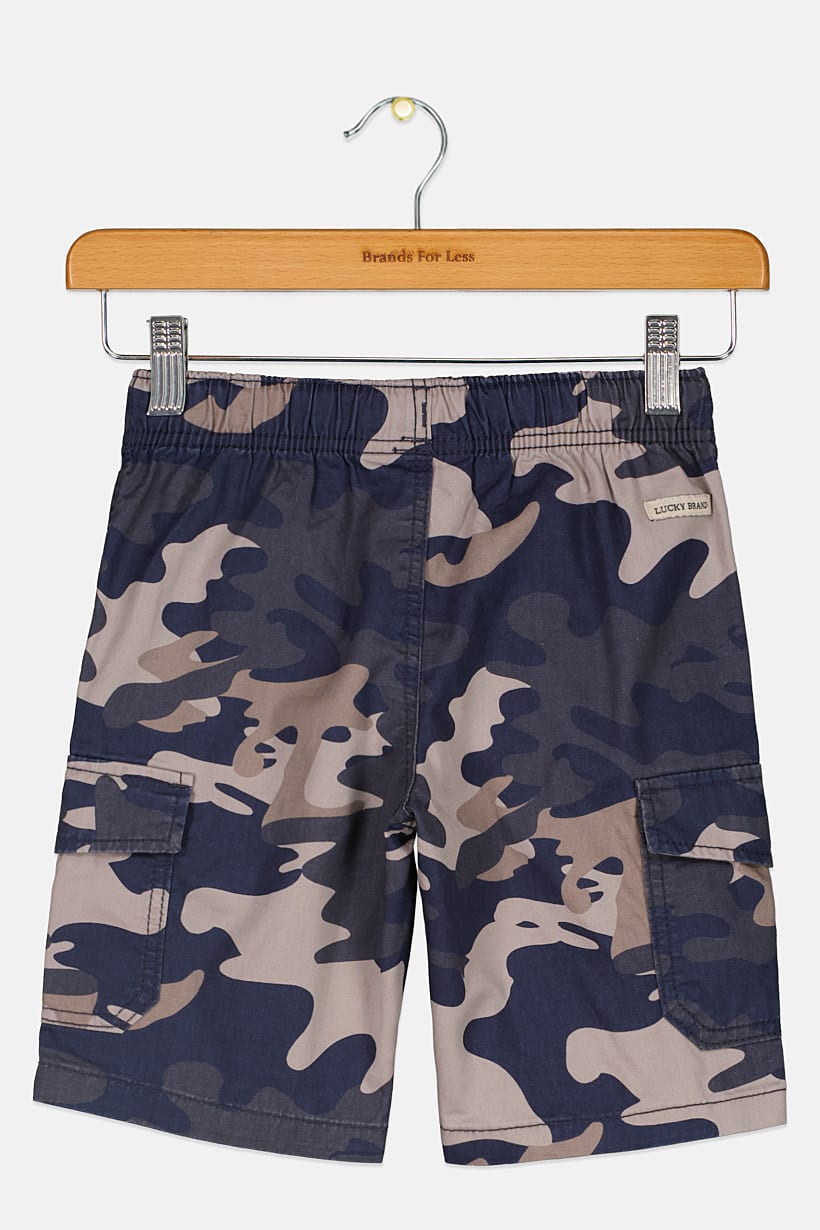 Kids Boy Pull On Camouflage Cargo Short, Navy Blue Combo