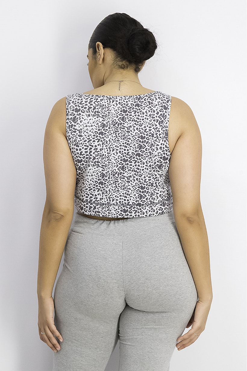 This product is suitable for women and can be machine washed. It features a cropped hem and sleeveless design, with a U-neckline and allover print. The fabric is made of 91% cotton and 9% elastane, providing a sportswear fit that is light in thickness. This sports bra is ideal for training and has a pullover closure. Please note that the product color may vary slightly due to photographic lighting sources or monitor settings.