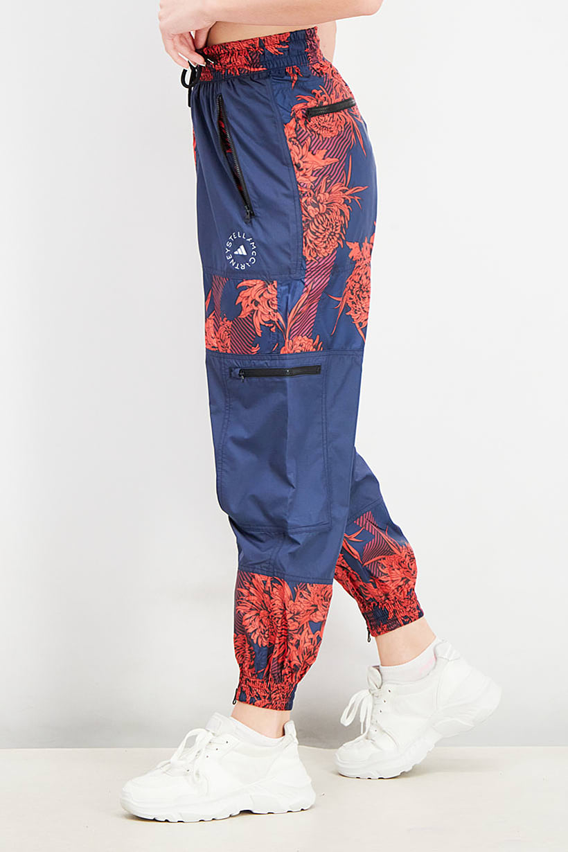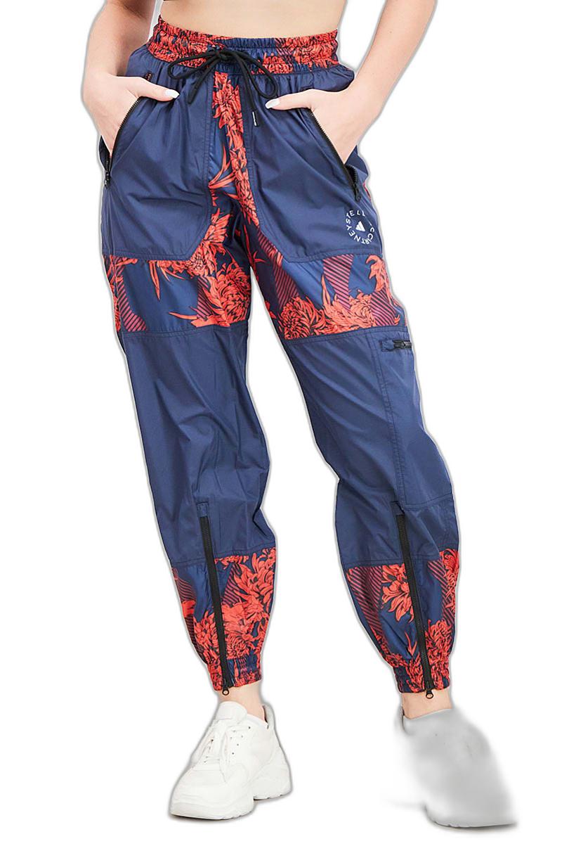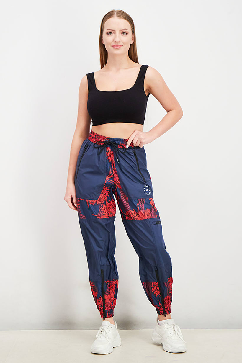 This product is easy to care for as it is machine washable. It has a regular fit and is available in Asian sizing. The fabric is made of 100% polyester and is light in thickness, making it suitable for training. Please note that the product color may appear slightly different due to lighting or monitor settings. The track pants feature an allover print and are categorized as sportswear. The color family of this product is navy blue.