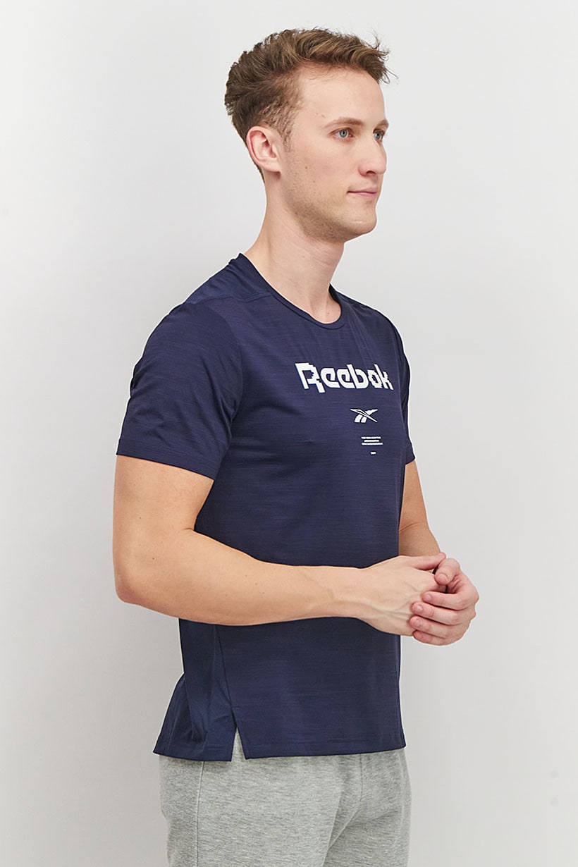 Men Sportwear Fit Brand Logo Training Shirt, Navy Blue