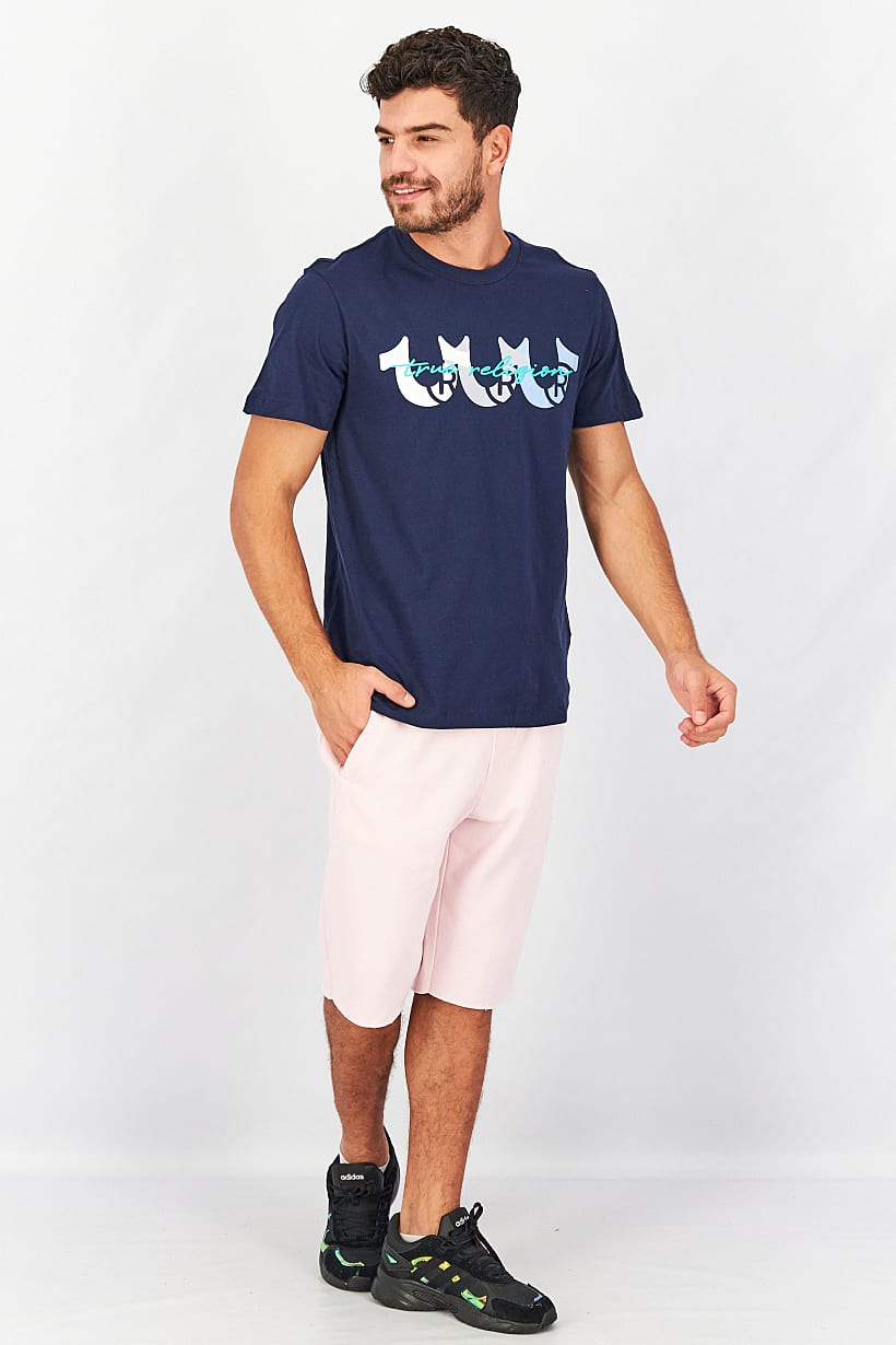 | nameOriginal | Men Crew Neck Short Sleeve Graphic Print T-Shirt, Navy Blue |