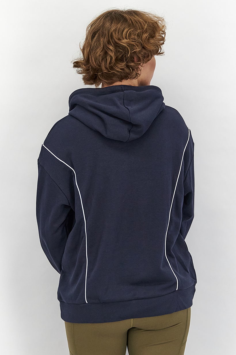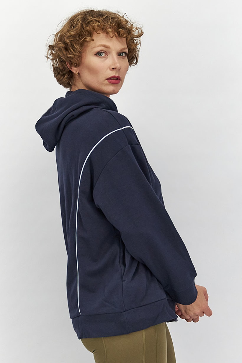 Navy Blue Hooded Sweatshirt for Women’s Fitness Training.