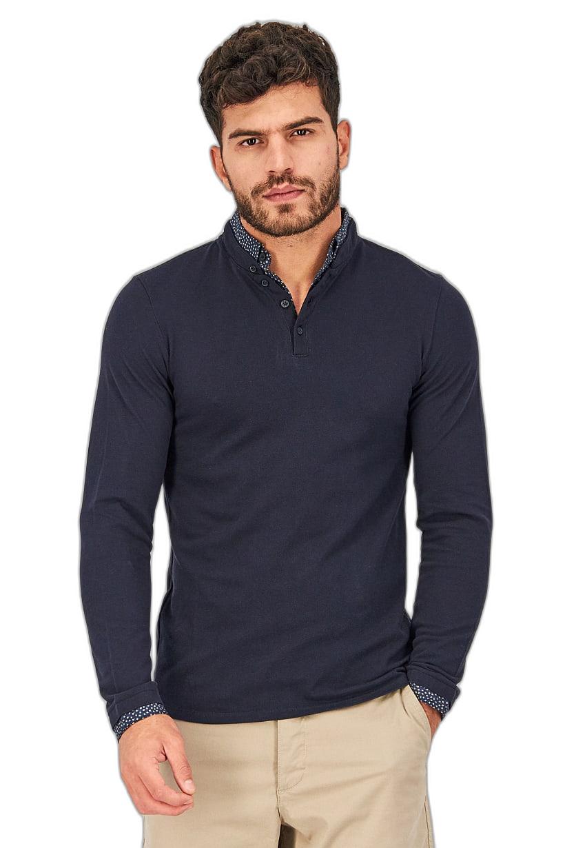 Men Clothing, Polo Shirts, men regular fit plain long sleeve polo shirt navy blue