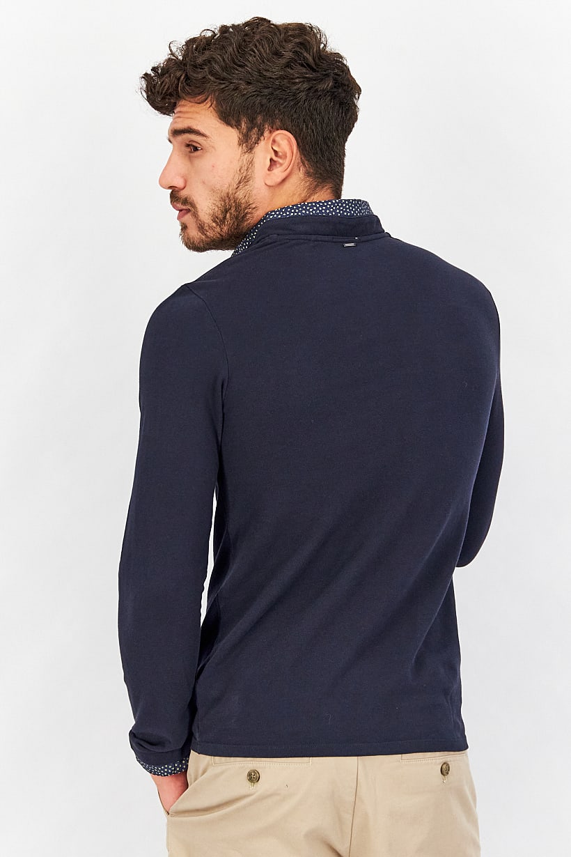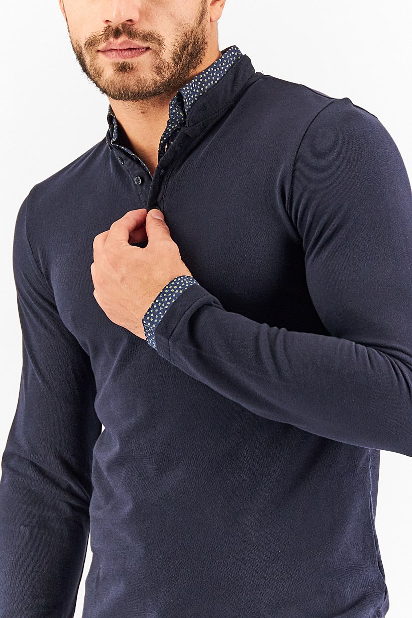 Navy Blue Long Sleeve Polo Shirt for Men with Regular Fit.