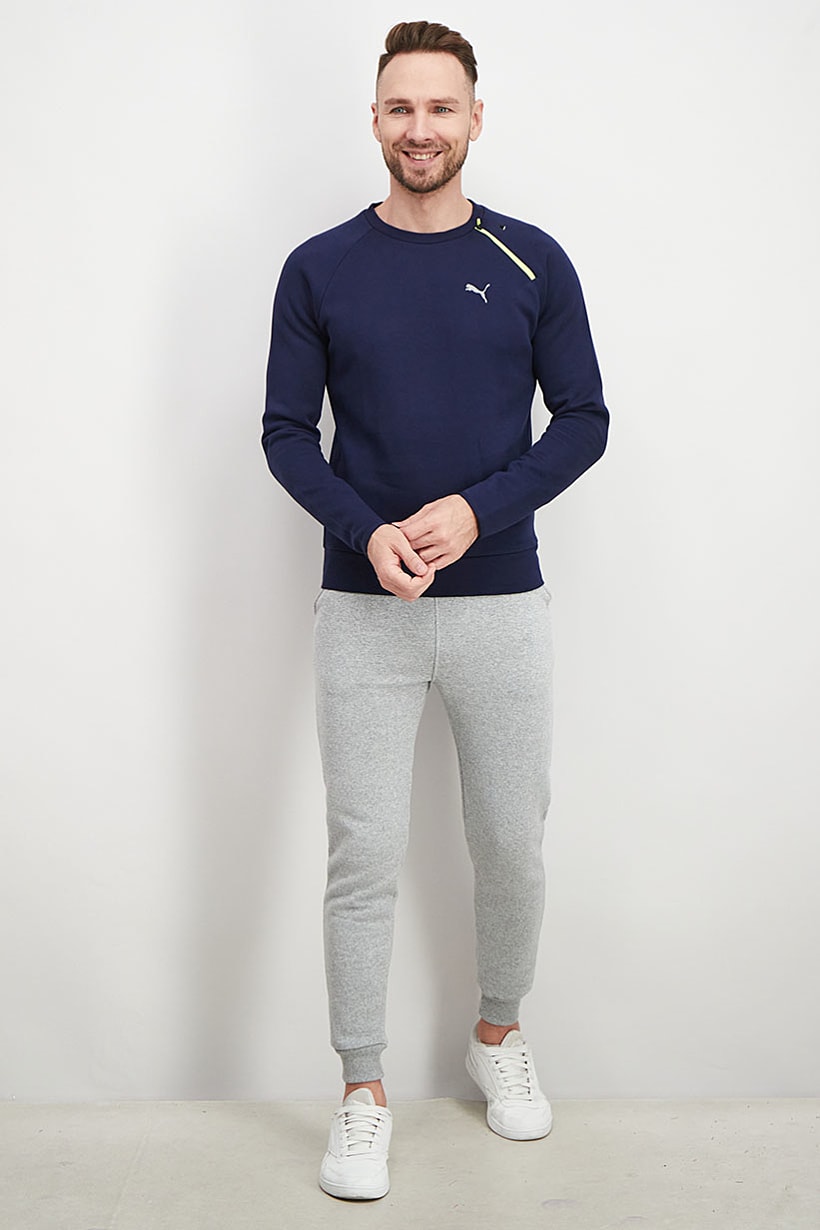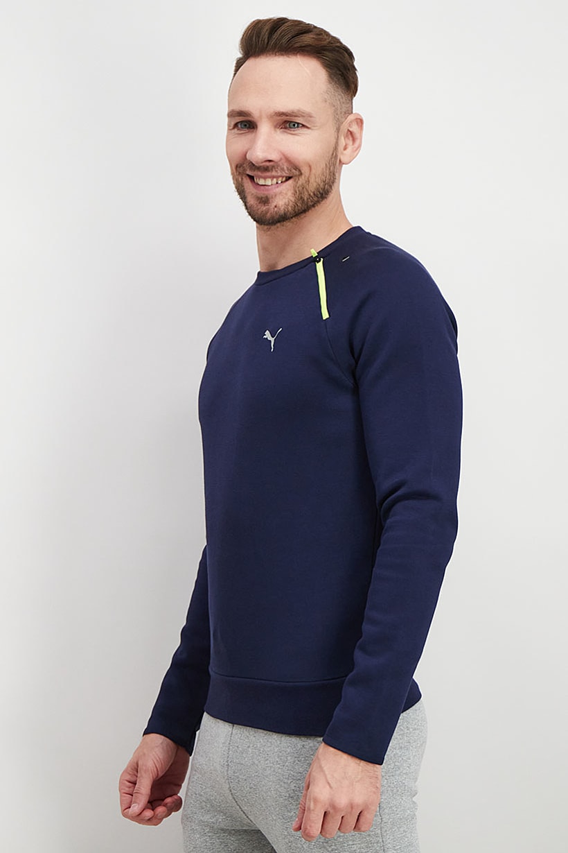 Care : Machine washable, Size shown : Asian, Sleeve Length : Long Sleeve, Thickness : Medium, Type of Neckline & Collar : Crew neckline , Disclaimer : Product color may slightly vary due to photographic lighting sources or your monitor settings., Fabrics : 80% Cotton, 20% Polyester, Pattern & Print : Brand Logo, Types of Closures : Pullover, Color Family : Navy Blue, Fit : Sportswear Fit, Sportswear Type : Sweatshirts, Type of Sport : Outdoors,