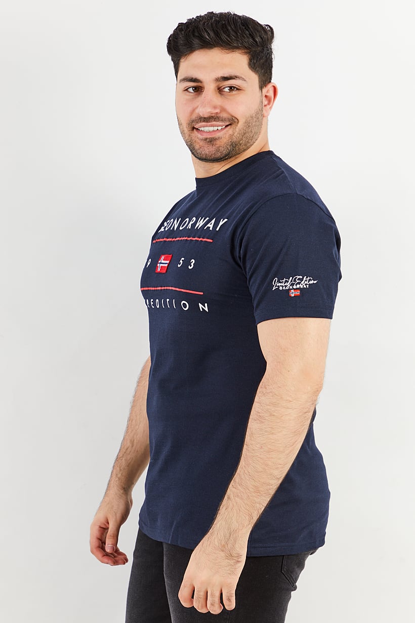 | descriptionOriginal | Care : Machine washable, Fit : Regular fit, Size shown : US, Sleeve Length : Short Sleeve, T-Shirt Style : Crew Neck, Type of Hem : Straight hem , Type of Neckline & Collar : Crew neckline , Disclaimer : Product color may slightly vary due to photographic lighting sources or your monitor settings., Fabrics : 100% Cotton, Occasion : Casual, Pattern & Print : Brand Logo, Types of Closures : Pullover, Color Family : Navy Blue, |