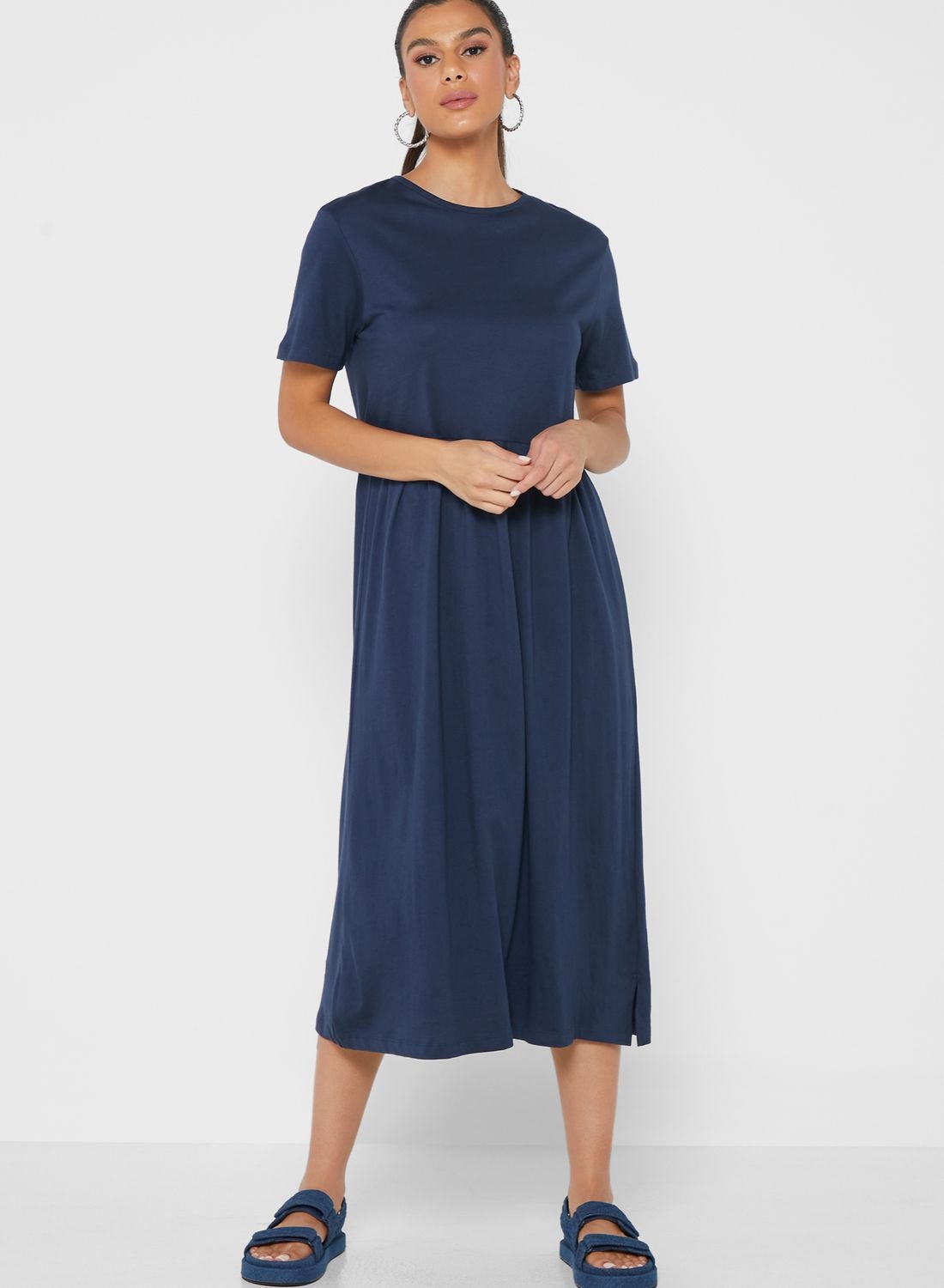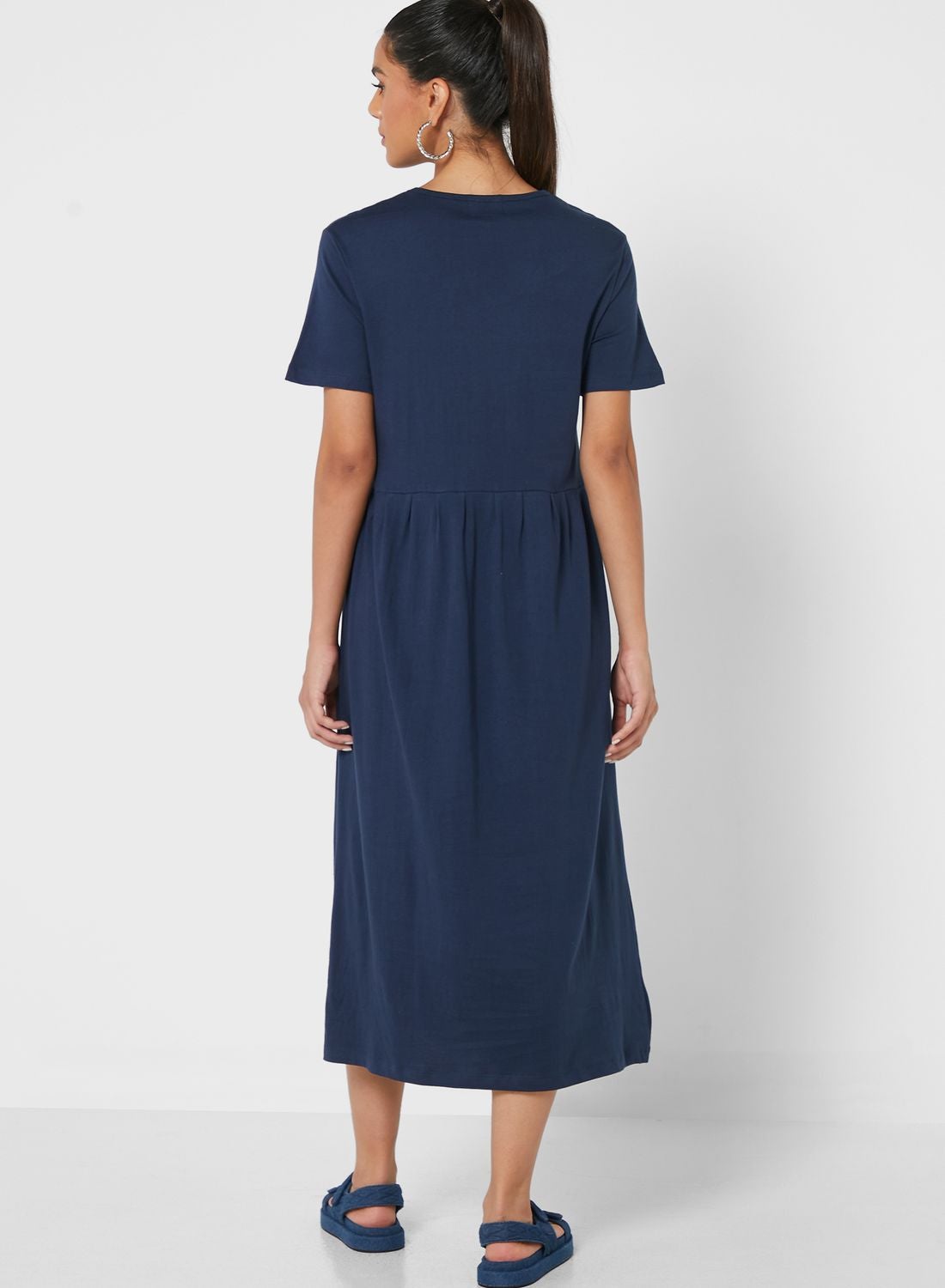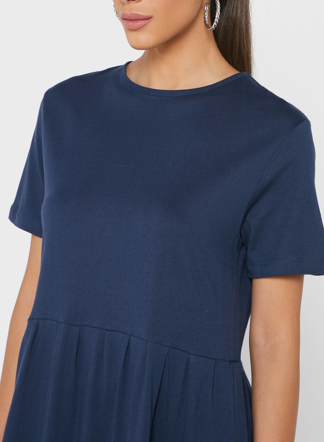 Pleated T-Shirt Midi Dress Navy Blue