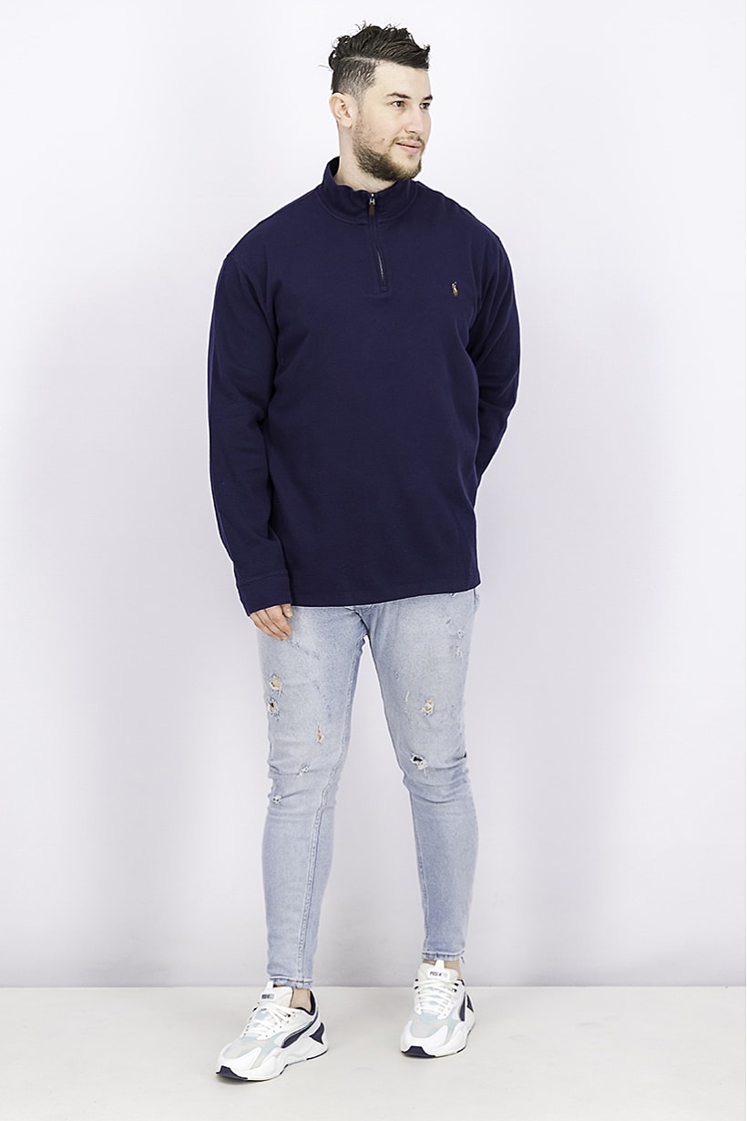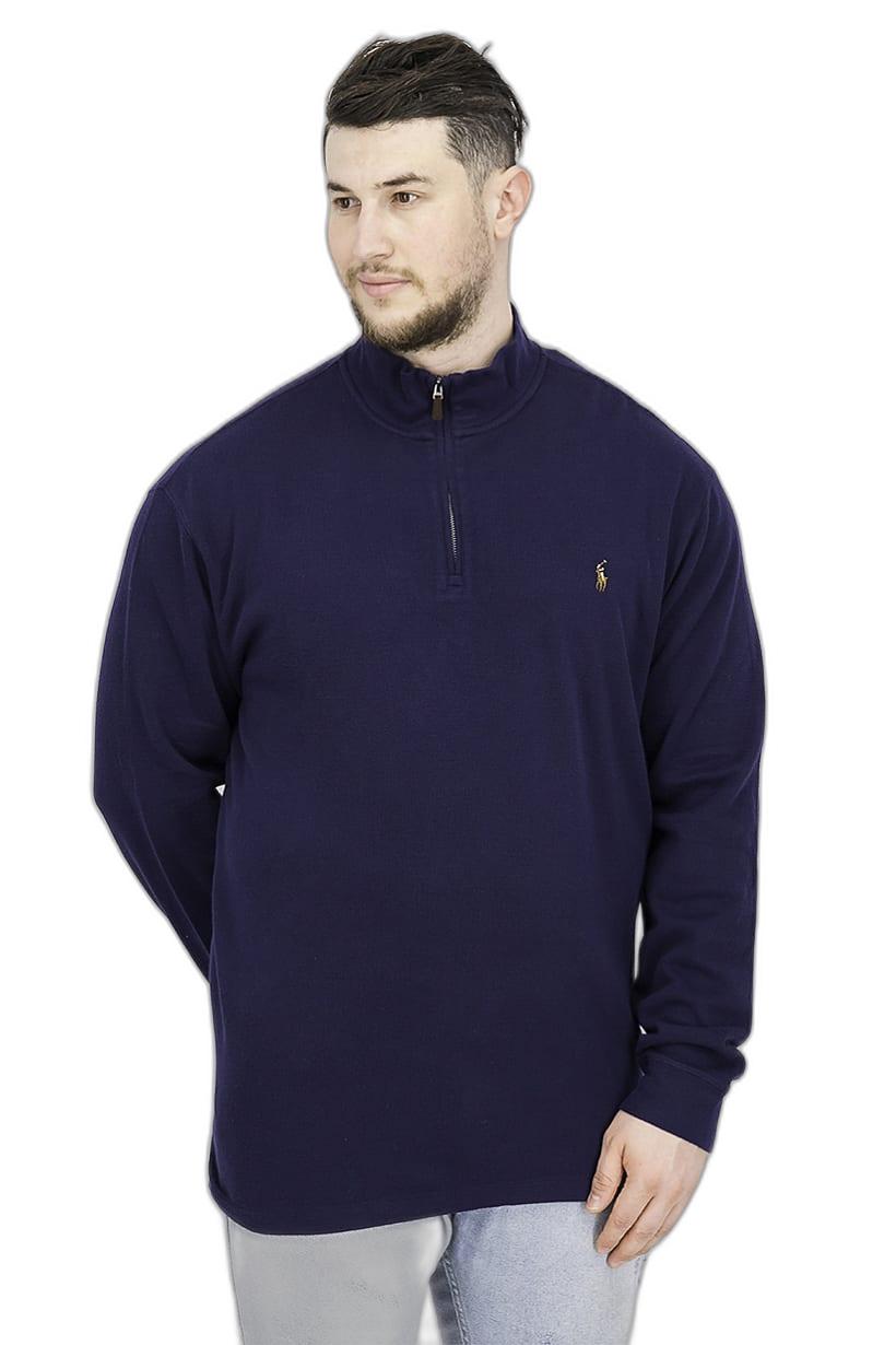 Navy Blue Quarter-Zip Pullover Sweater for Men’s Big and Tall Sizes.
