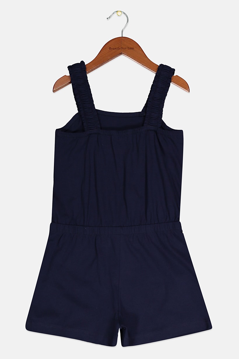 Navy Blue Sleeveless Romper with Graphic Print for Girls.