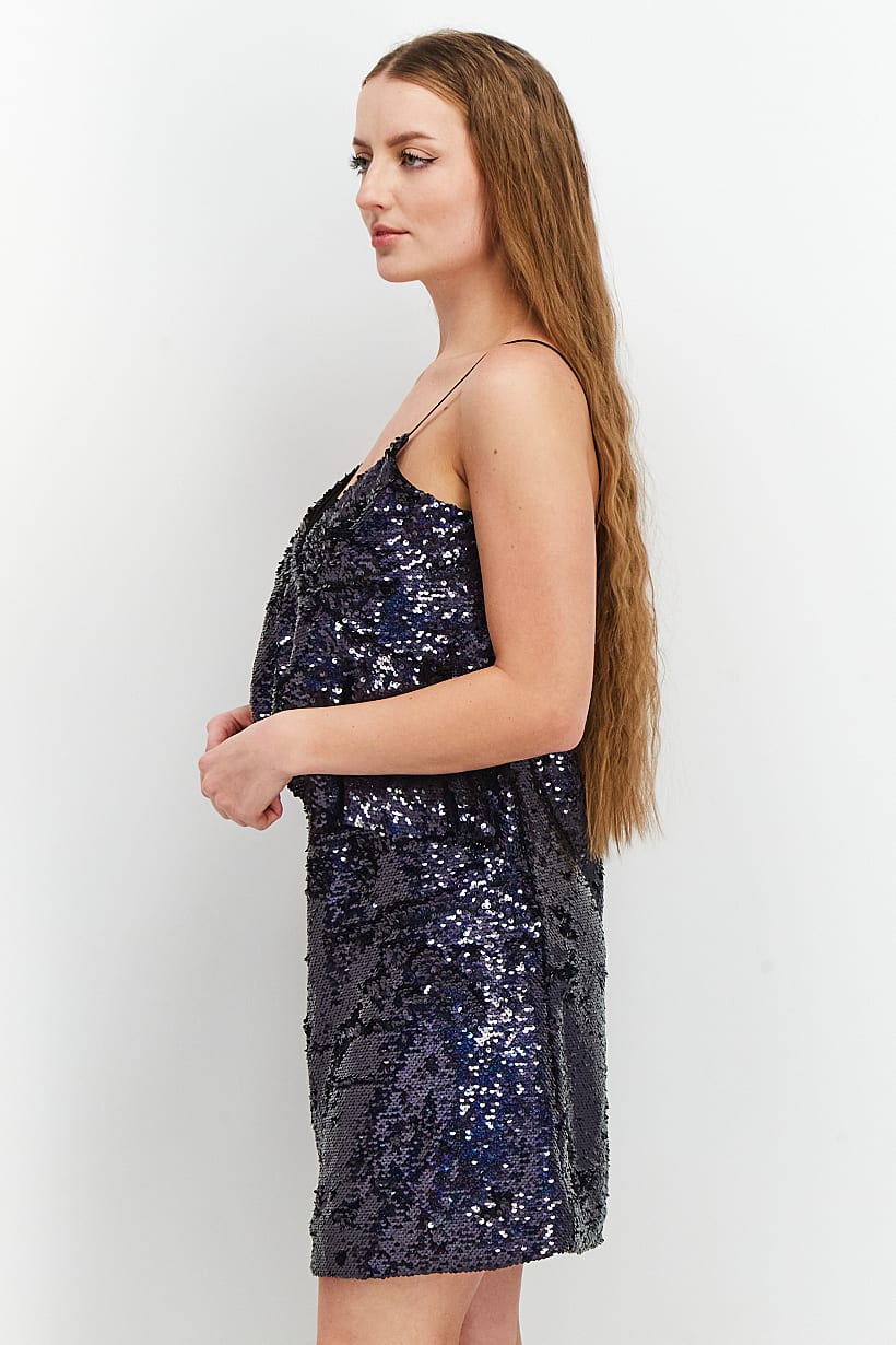 Women Sequins Sleeveless Mini Dress, Dark Navy