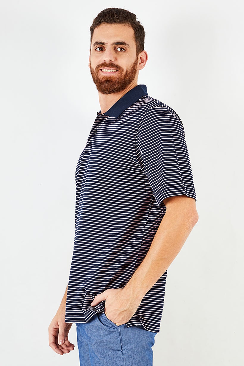 Men Regular Fit Stripe Short Sleeve Polo Shirt, Navy Blue