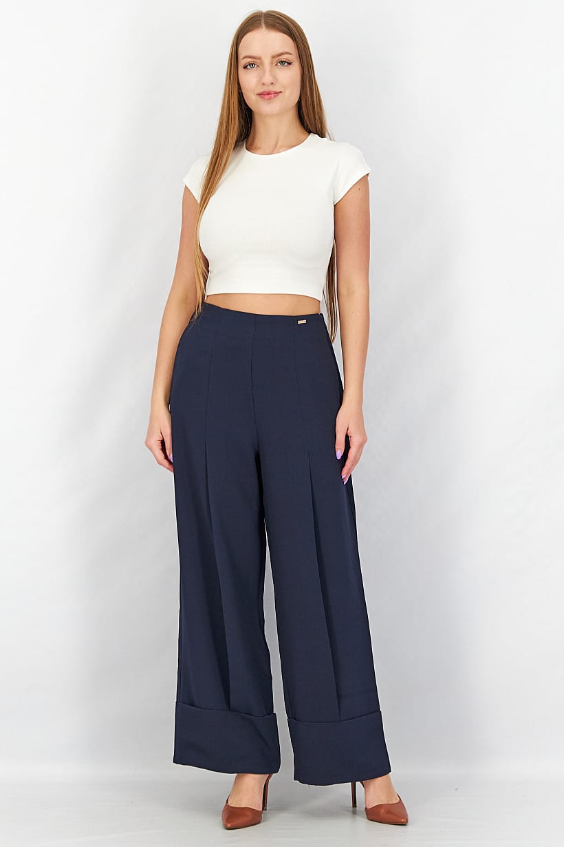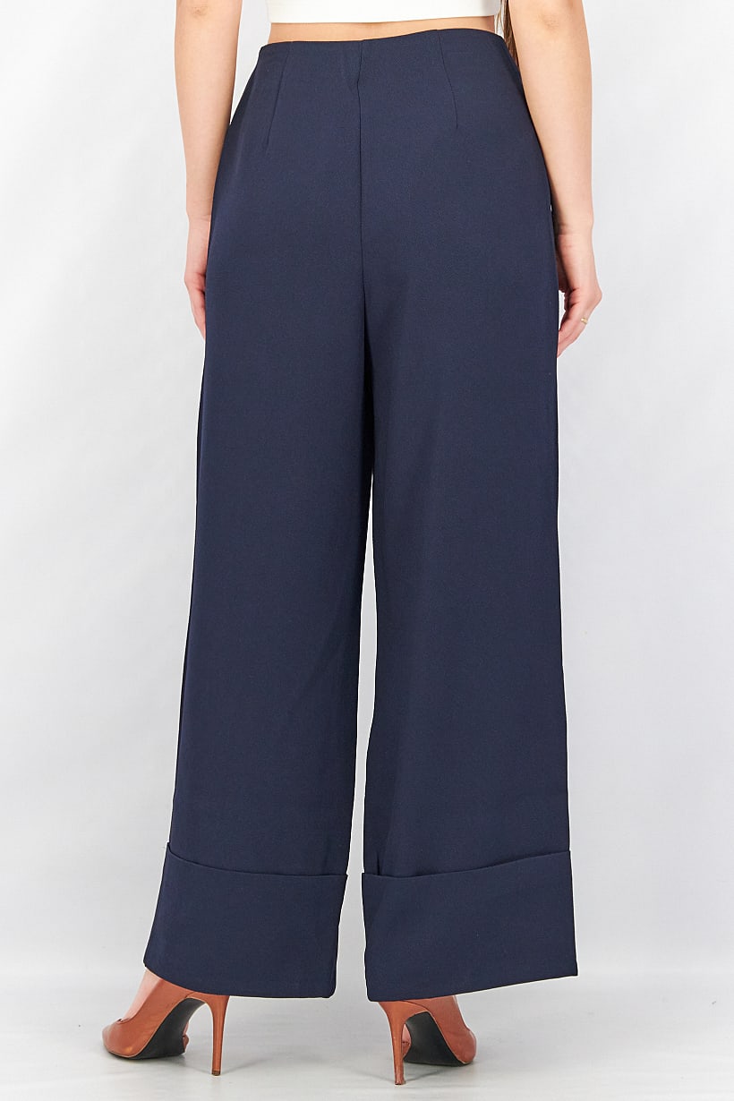 | sub_Categories | Women Clothing, Pants, women regular fit side zip cuffed hem trouser pants navy blue |