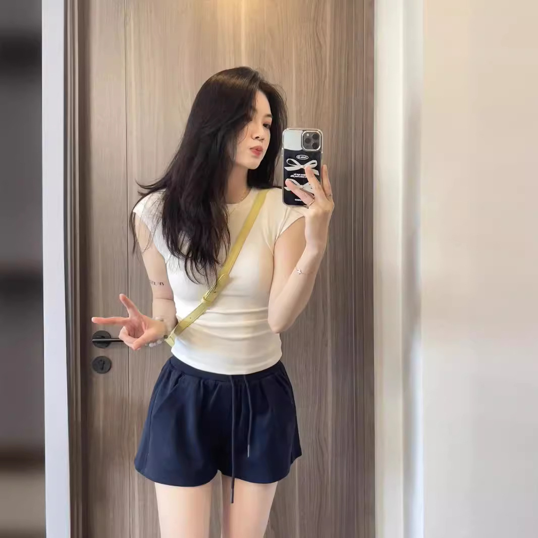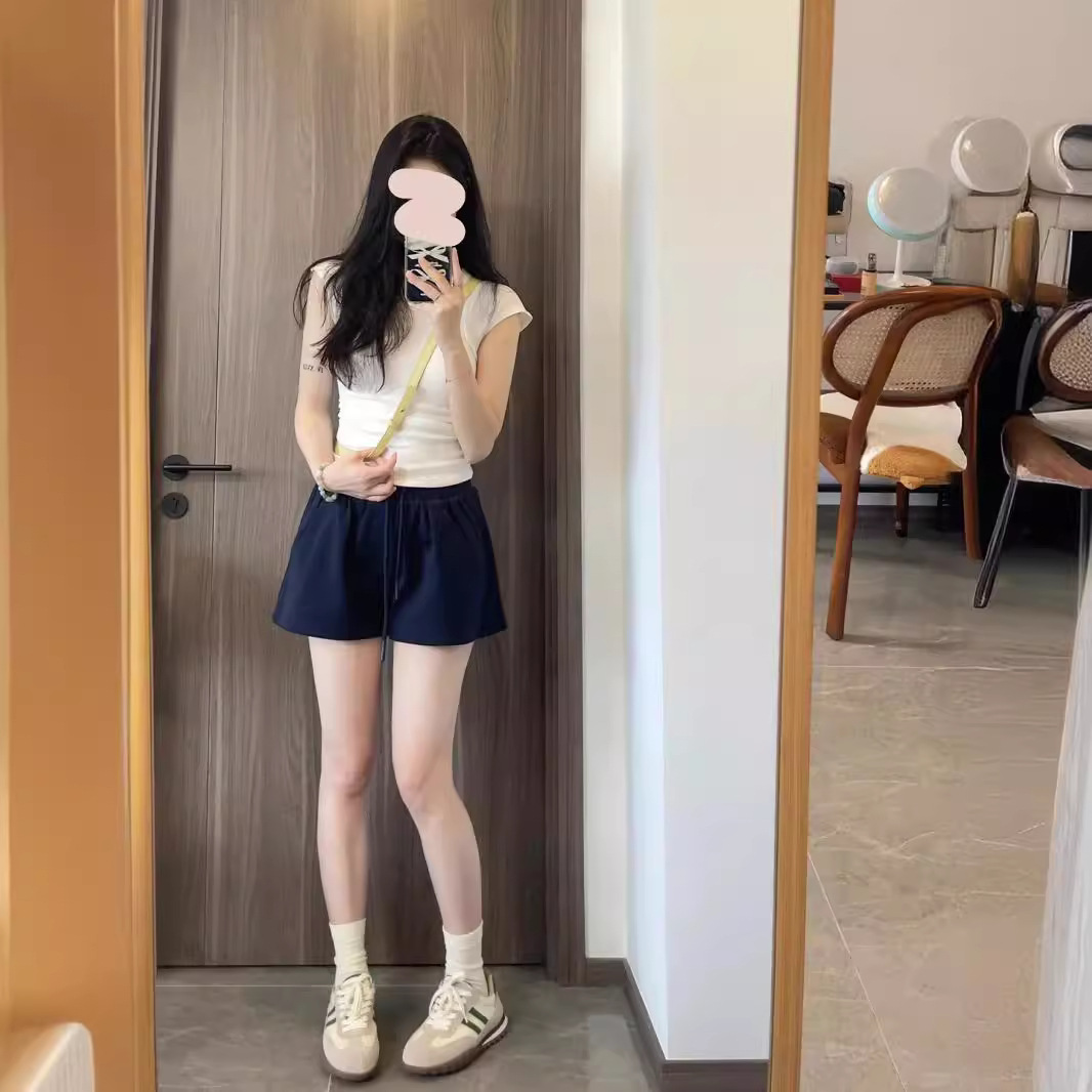 navy blue Wide Leg Sports Shorts Women’s Summer Loose Slim-fit Home Pajama Pants All-match Casual Outwear Running Hot Pants Trendy
