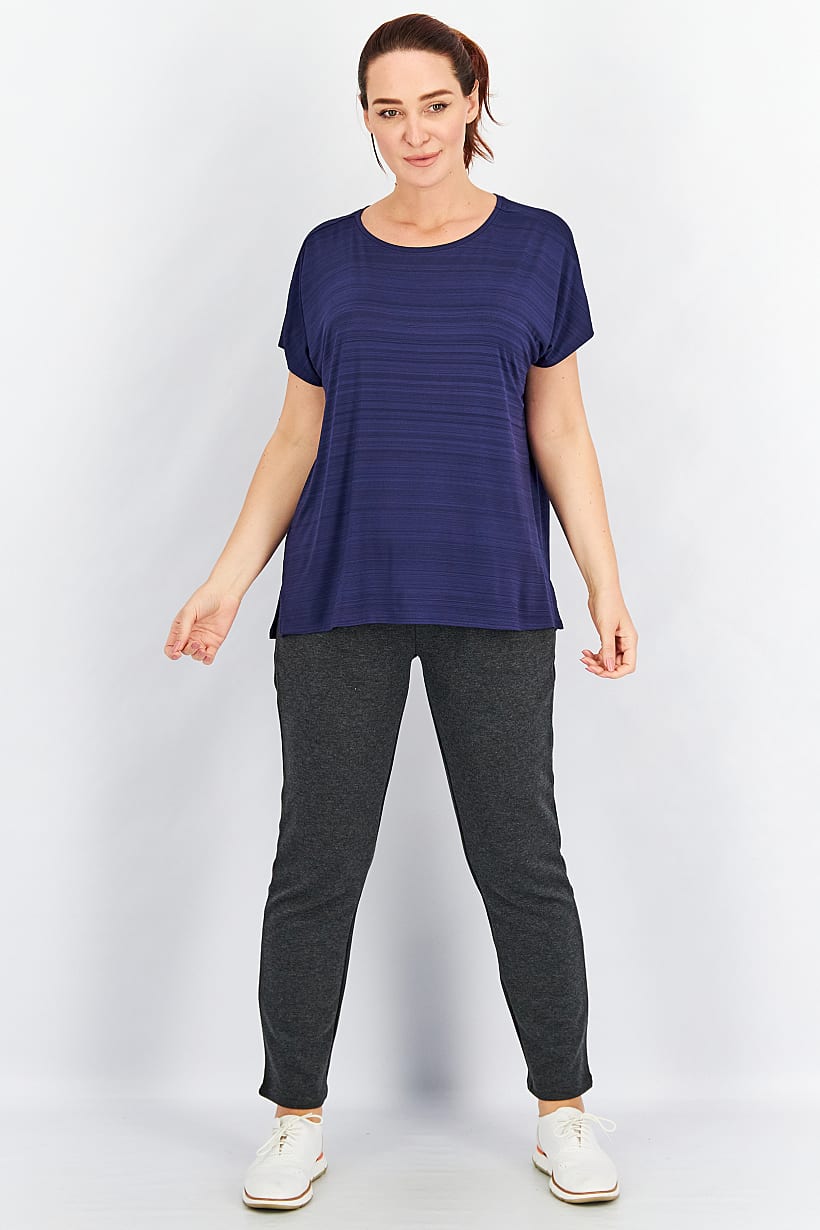 | descriptionOriginal | Care : Machine washable, Fit : Regular fit, Ideal For : Women, Sleeve Length : Short Sleeve, Type of Sport : Outdoors, Types of Hem : Straight hem, Types of Neckline & Collar : Round neckline, Types of Sleeve : Short sleeve, Disclaimer : Product color may slightly vary due to photographic lighting sources or your monitor settings., Fabrics : 86% Polyester, 14% Elastane, Pattern & Print : Textured pattern, Sportswear Type : Tops, Types of Closures : Pullover, Color Family : Navy Blue, |