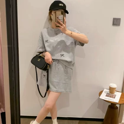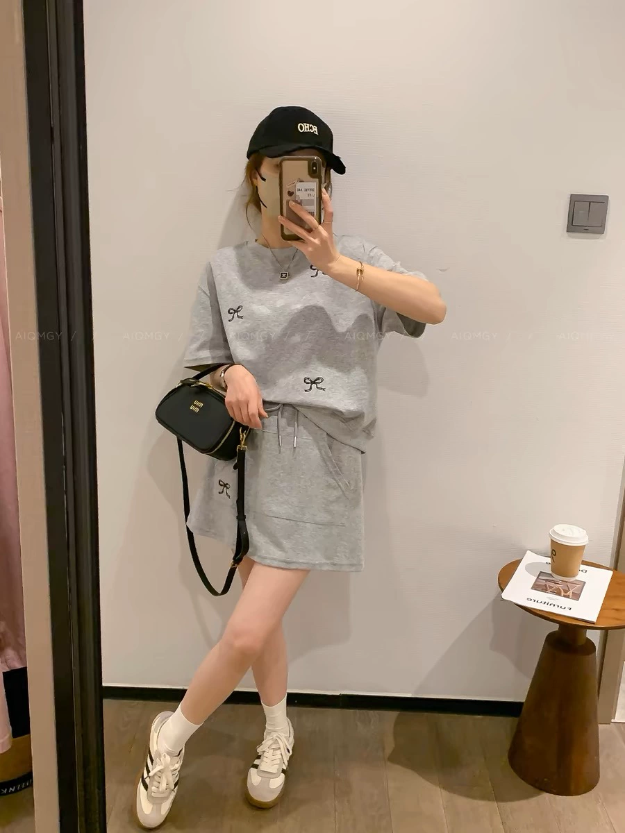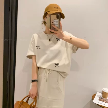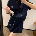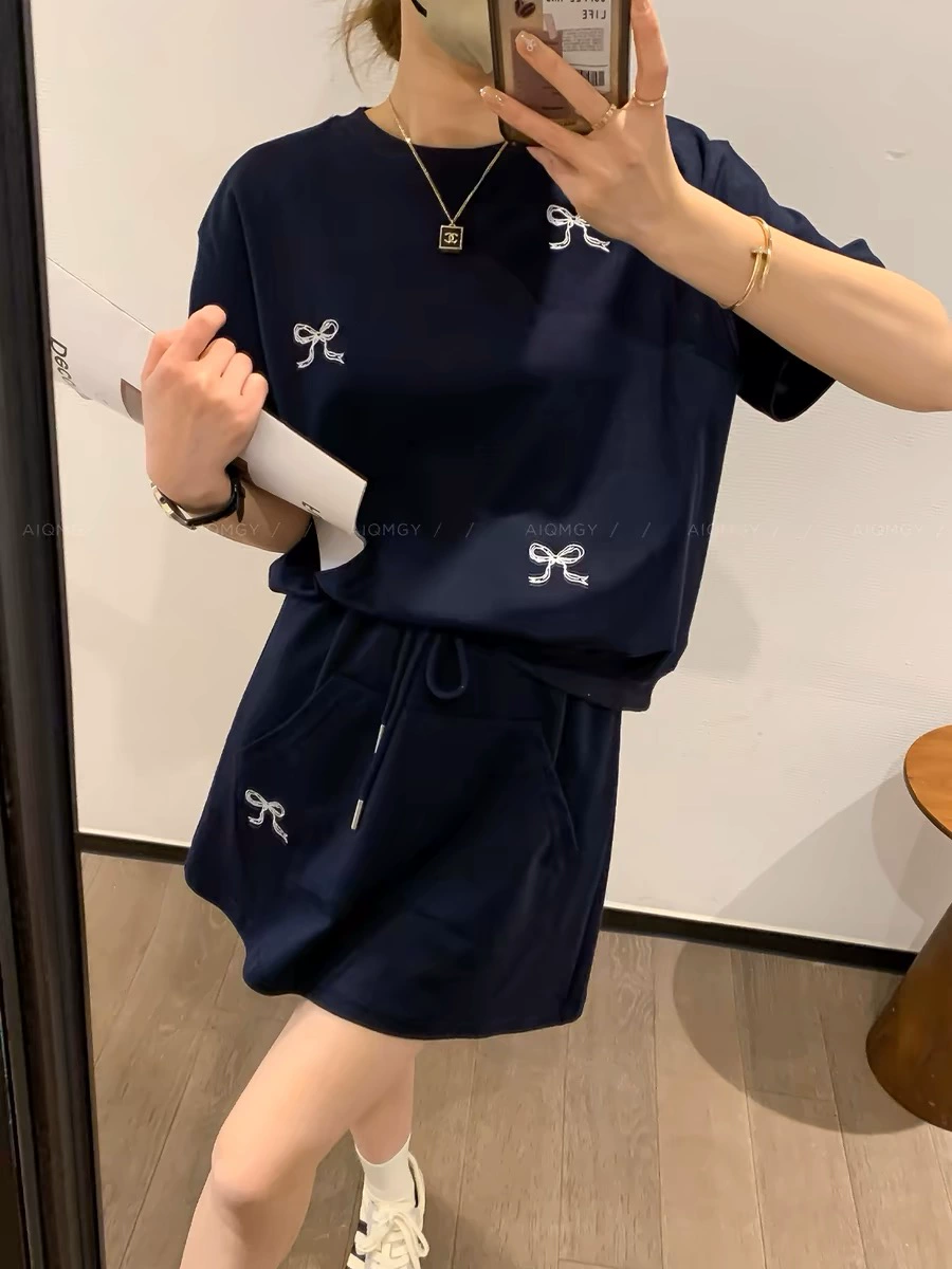 | nameOriginal | Navy blue women's summer round neck short-sleeved T-shirt with A-line embroidery |
