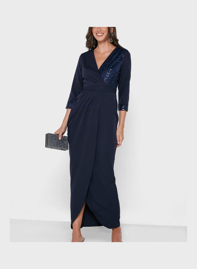 | nameOriginal | Embellished Detail Wrap Dress Navy Blue |