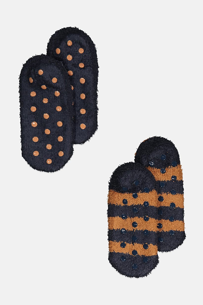 Navy/Brown Textured Slipper Socks for Girls (2 Pairs)