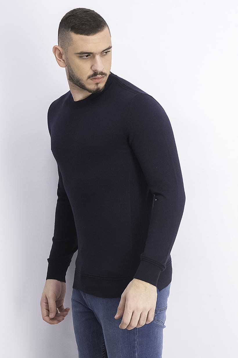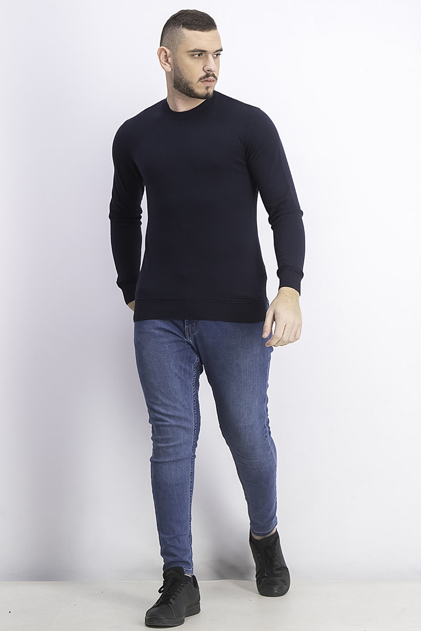 | nameOriginal | Men Plain Long Sleeve Cashmere Blend Sweater, Navy |