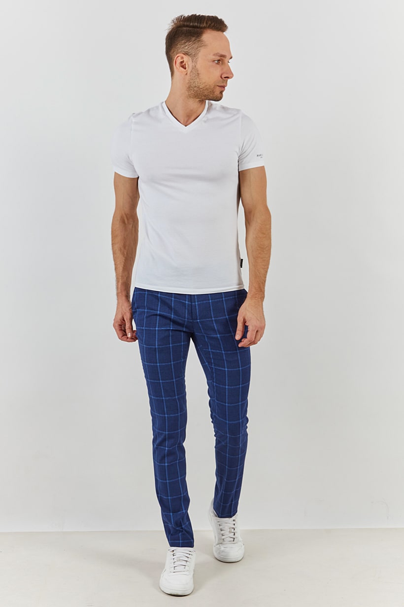 | sub_Categories | Men Clothing, Pants, men regular checkered stretchable dress pants navy |