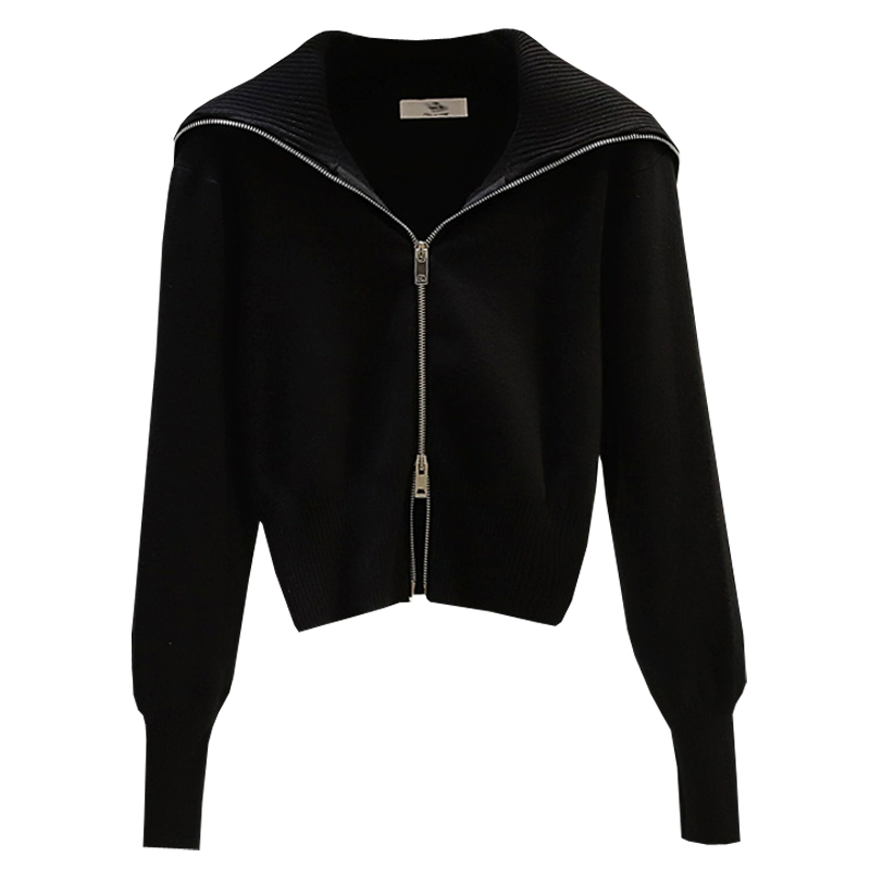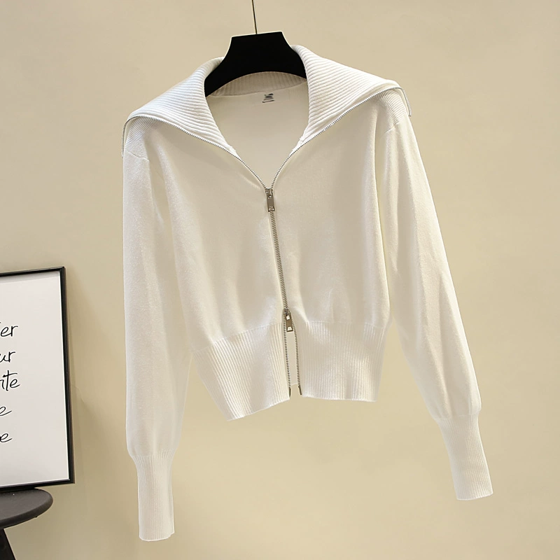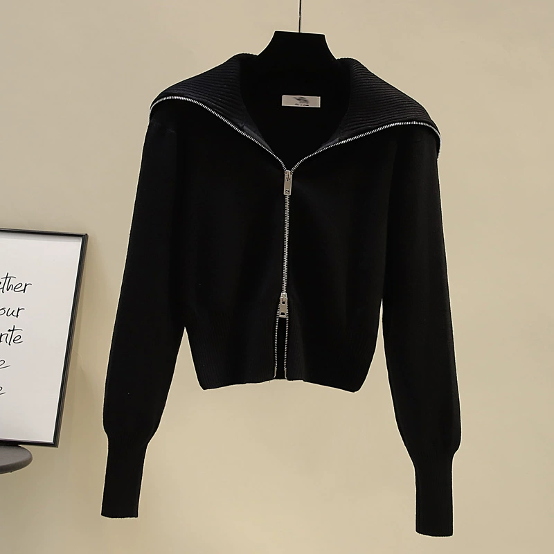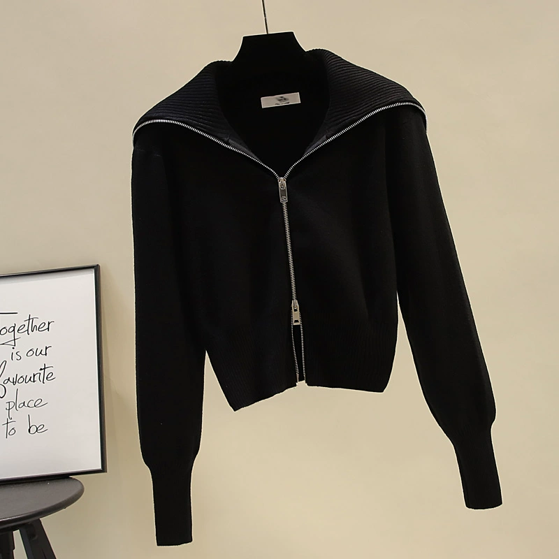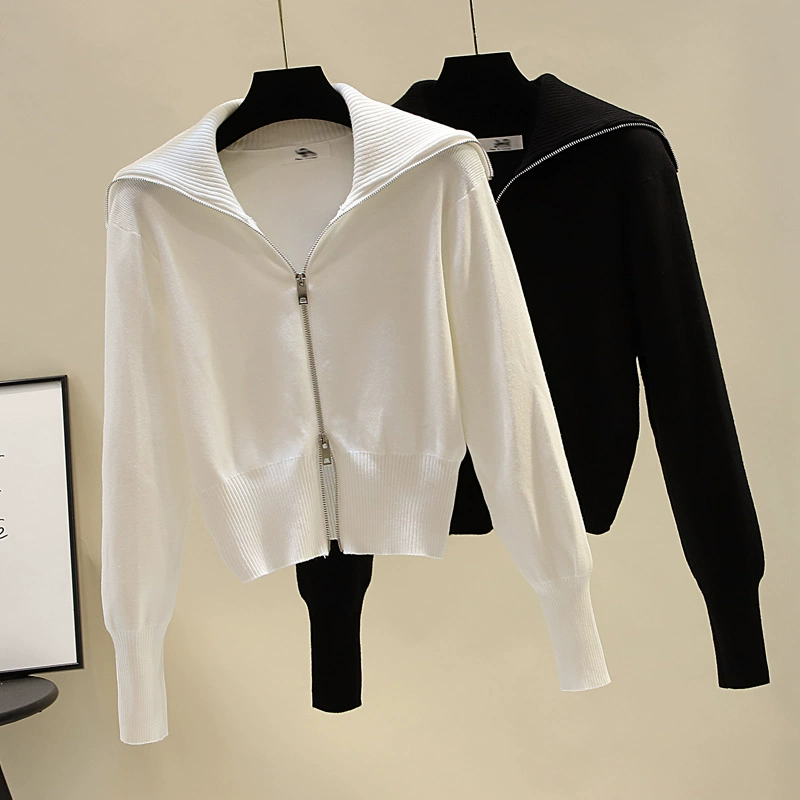 | nameOriginal | Navy collar double-ended zipper knitted cardigan for women, loose, foreign-style short shirt, slim fit, long-sleeved sweater jacket |