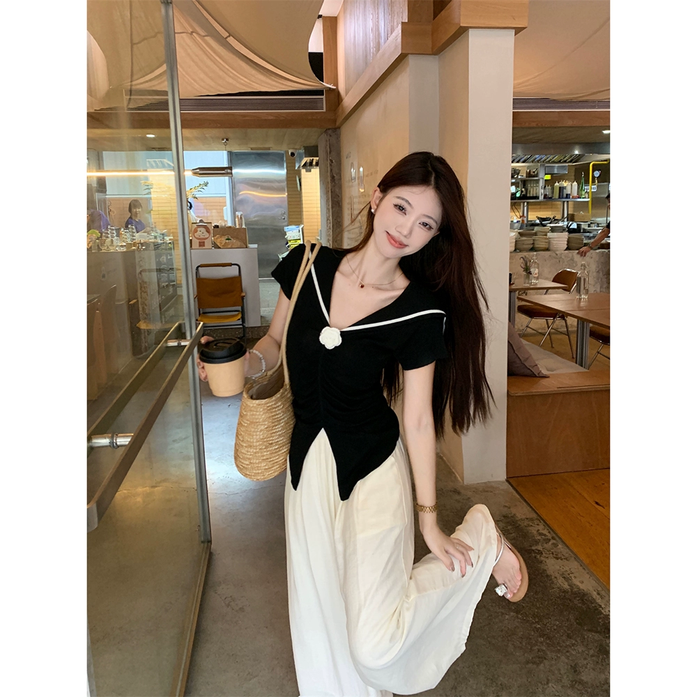 | nameOriginal | Navy collar three-dimensional casual trousers for women summer flowers |