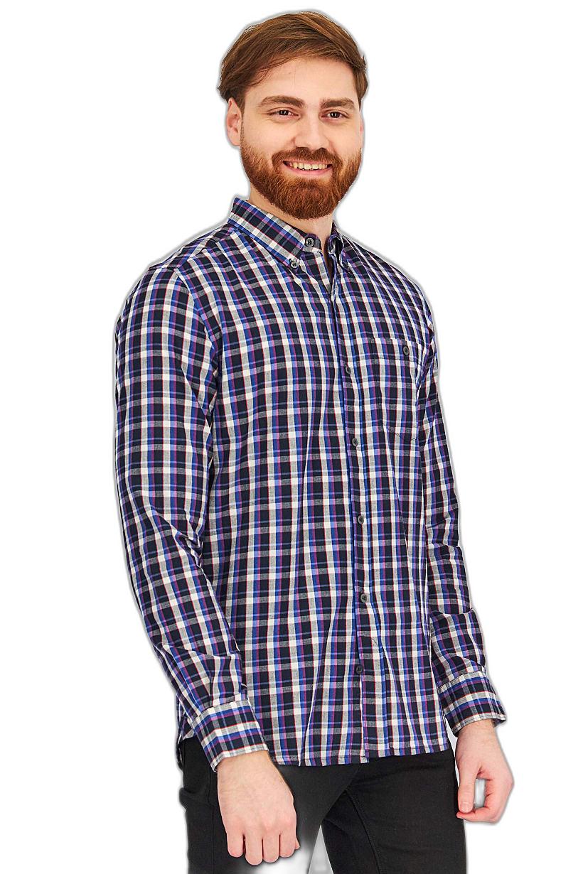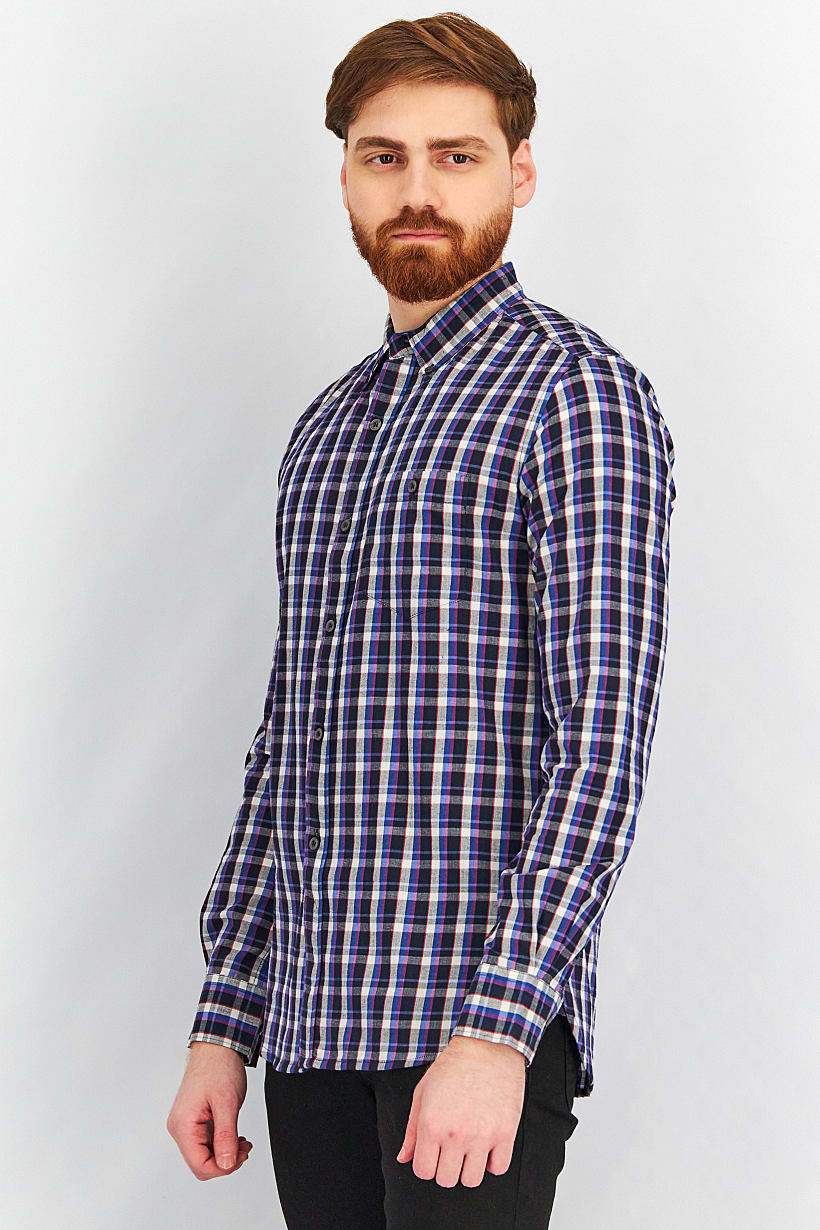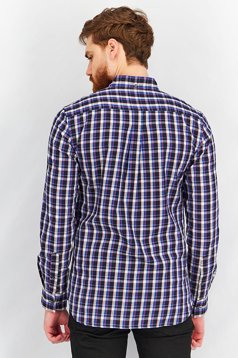 | nameOriginal | Men Regular Fit Checked Washed Long Sleeves Casual Shirt, Navy Combo |