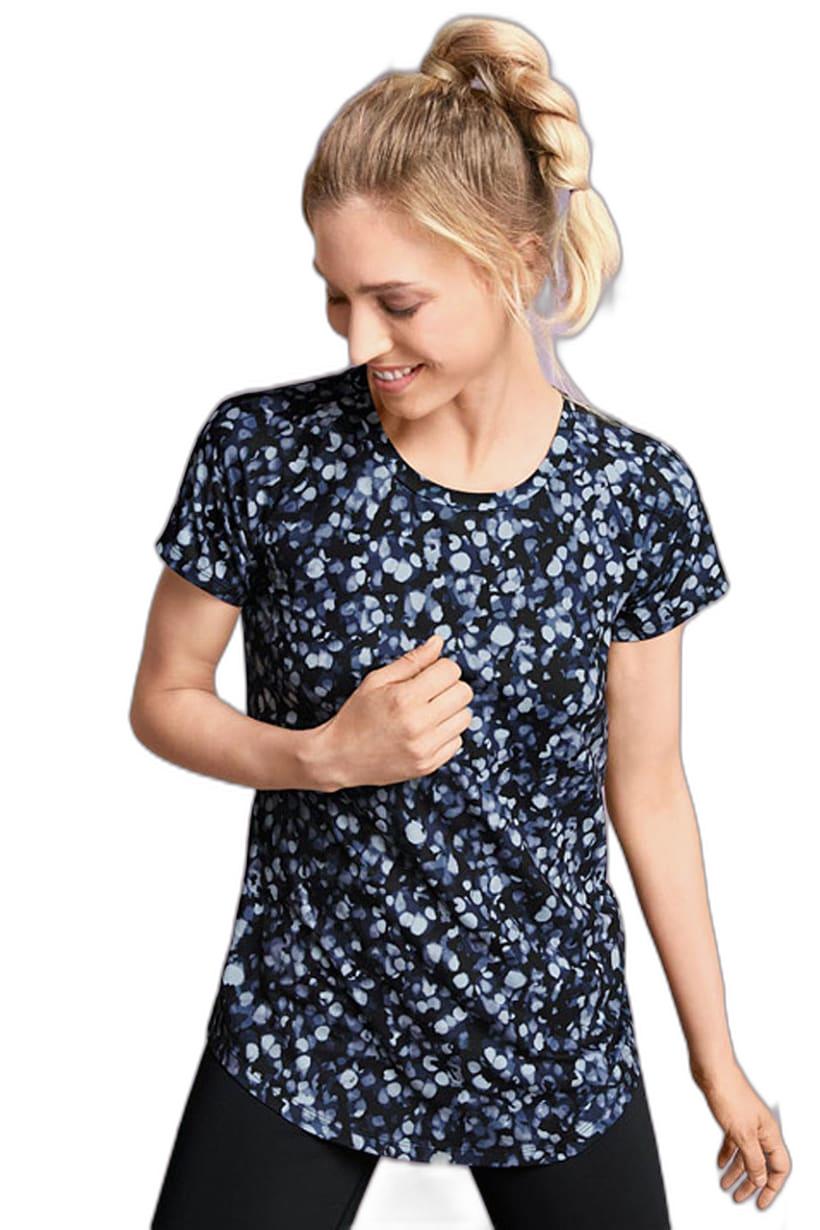 | descriptionOriginal | Sportswear Type : T-Shirt, Sleeve Length : Short Sleeve, Occasion : Sport, Care : Machine washable, Ideal For : Women, Types of Neckline & Collar : Round neckline, Fabrics : 5% Elastane, 95% Polyester, Pattern & Print : Allover print, Types of Sleeve : Short sleeve, Type of Sport : Training, Types of Closures : Pullover, Types of Hem : Straight hem, Bottom Hem : Straight, Color Family : Navy Blue, |