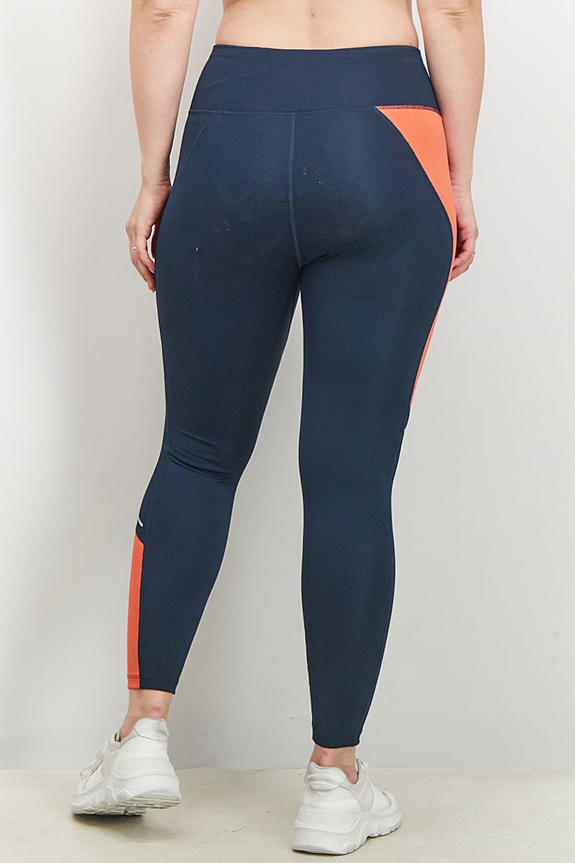 Navy Combo Women’s High-Waisted Sport Leggings with Brand Logo.