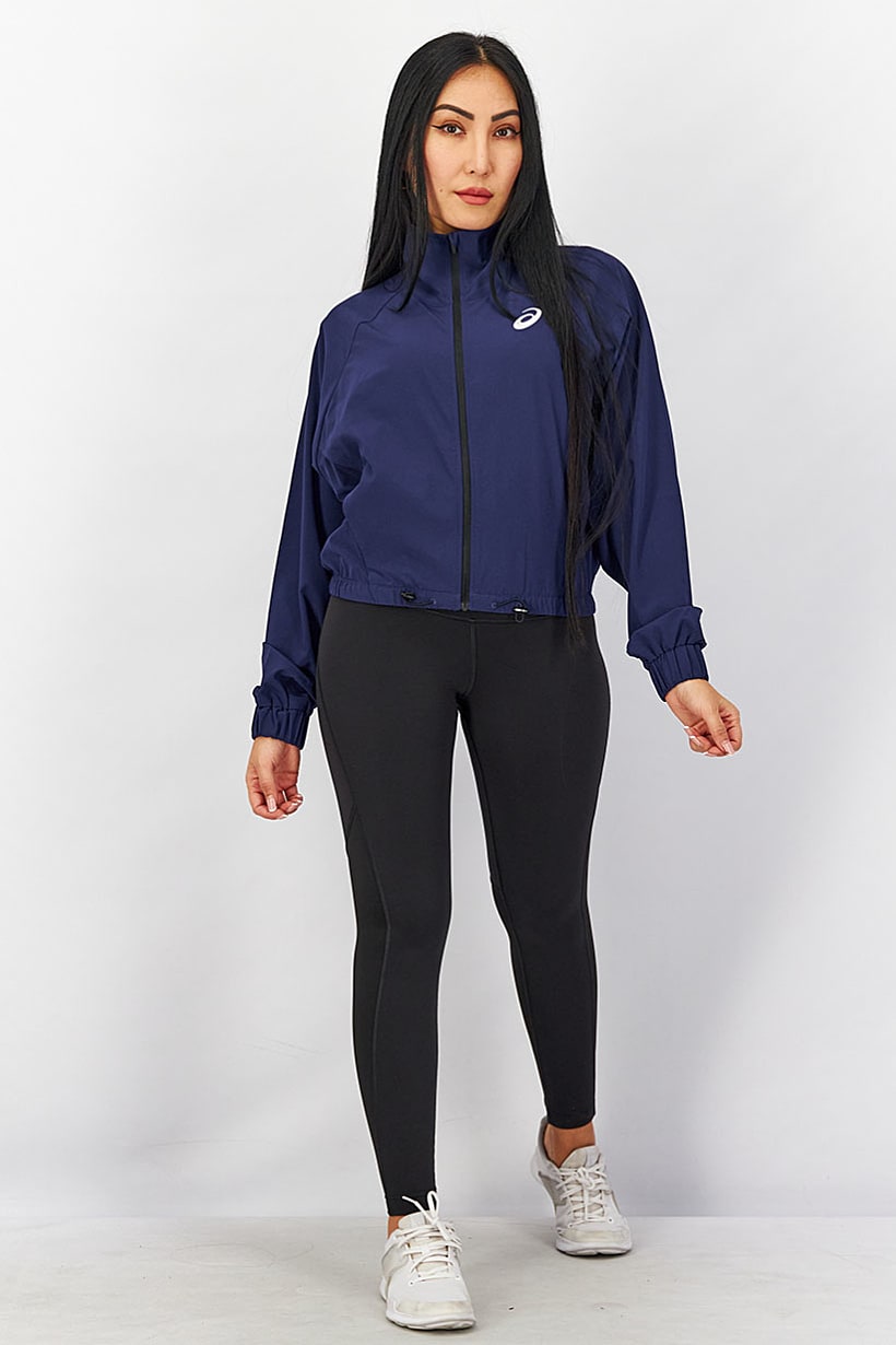 This product is easy to care for as it is machine washable. It has a relaxed fit and is available in international sizes. The fabric is light and suitable for training. Please note that the product color may appear slightly different due to lighting or monitor settings. The jacket is made of 84% polyester and 16% elastane and features the brand logo as a pattern and print. It is perfect for sports occasions and has a zipper closure. The color family of this jacket is navy blue.