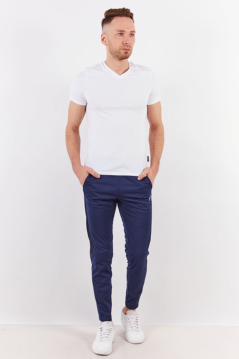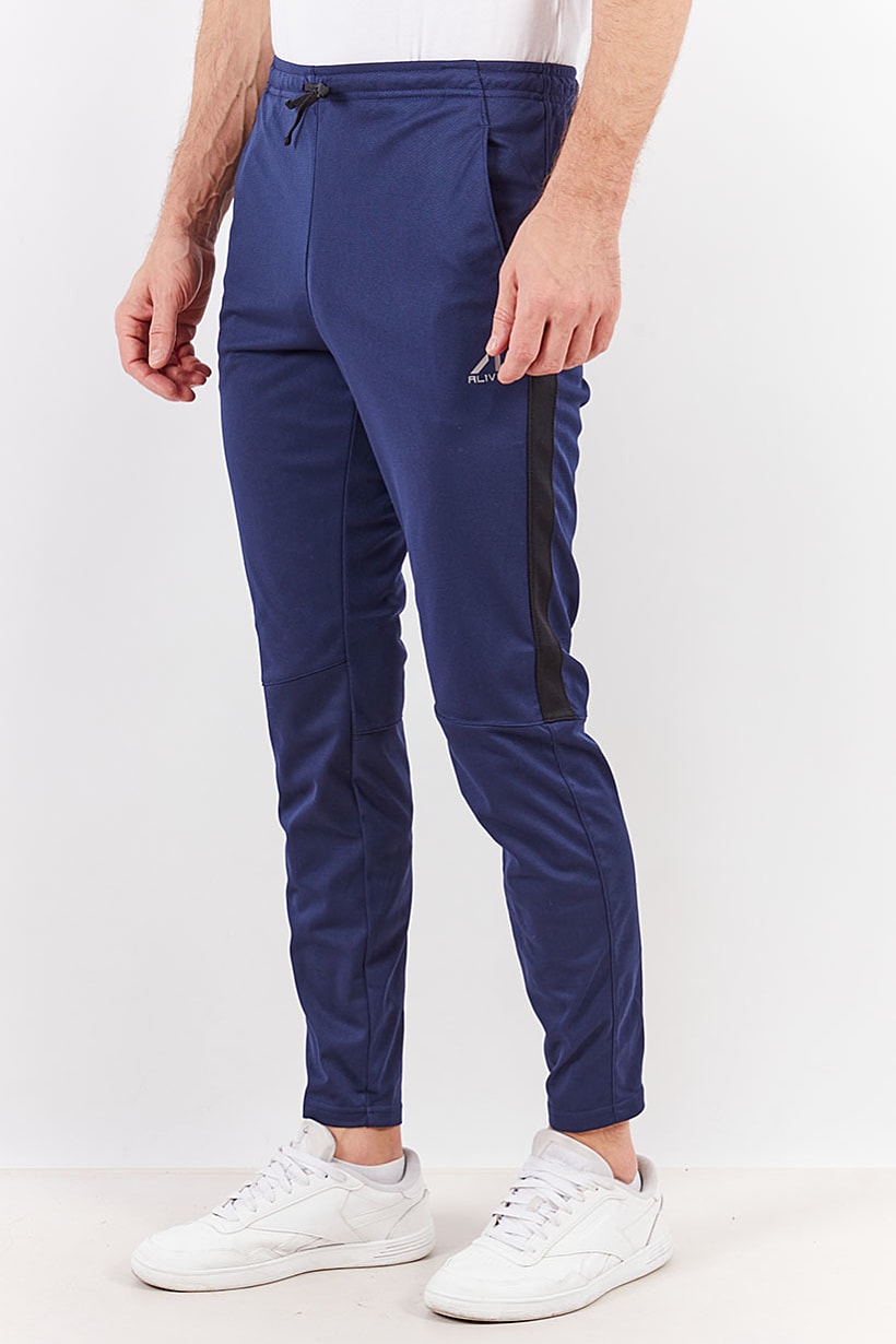 Navy Drawstring Sweatpants with Brand Logo for Men’s Sports Fit.