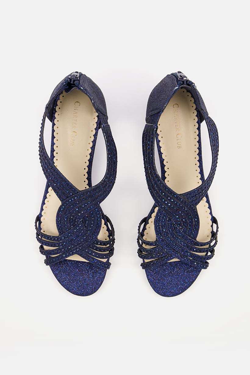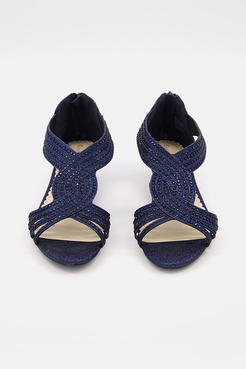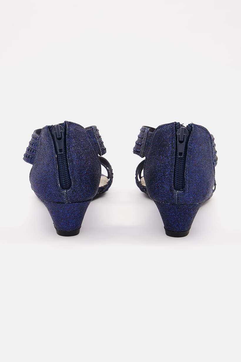 Heel Height : 1.5" / 3.8 cm, Heel Style : Wedge heel, Ideal For : Women, Shoe Closure : Zipper closure, Sole Material : Synthetic sole, Toe Style : Open toe, Disclaimer : Product color may slightly vary due to photographic lighting sources or your monitor settings., Occasion : Casual, Pattern & Print : Metallic, Shoe Material : Synthetic Leather, Color Family : Navy Blue, Shoe Width : Wide,