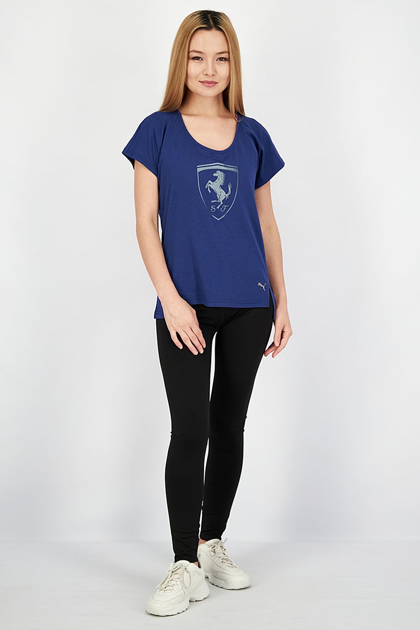 Women Clothing, Sportswear, women sport fit short sleeve ferrari big shield print top navy