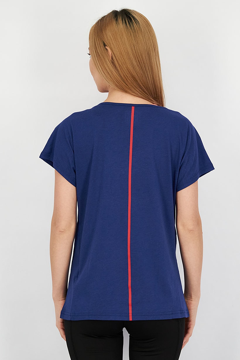 Bottom Hem : Straight, Care : Machine washable, Fit : Sportswear Fit, Ideal For : Women, Size shown : International, Sleeve Length : Short Sleeve, Thickness : Light, Type of Sport : Training, Types of Neckline & Collar : Round neckline, Types of Sleeve : Short sleeve, Disclaimer : Product color may slightly vary due to photographic lighting sources or your monitor settings., Fabrics : 60% Cotton, 40% Modal, Pattern & Print : Brand Logo, Sportswear Type : T-Shirt, Types of Closures : Pullover, Color Family : Navy Blue,