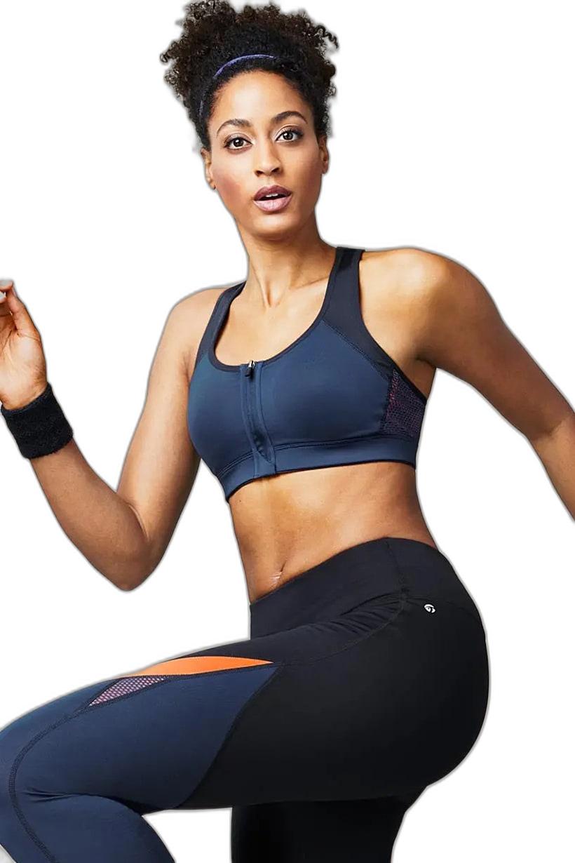 Sportswear Type : Sports Bra, Occasion : Sport, Bottom Closure : Zipper fly, Care : Machine washable, Ideal For : Women, Types of Neckline & Collar : Round neckline, Fabrics : 18% Elastane, 82% Polyester, Pattern & Print : Plain/Solid, Type of Sport : Training, Types of Closures : Zipper closure, Types of Hem : Straight hem, Color Family : Navy Blue, Disclaimer : No returns accepted on lingerie, socks, undergarments and swimwear due to hygiene reasons.,