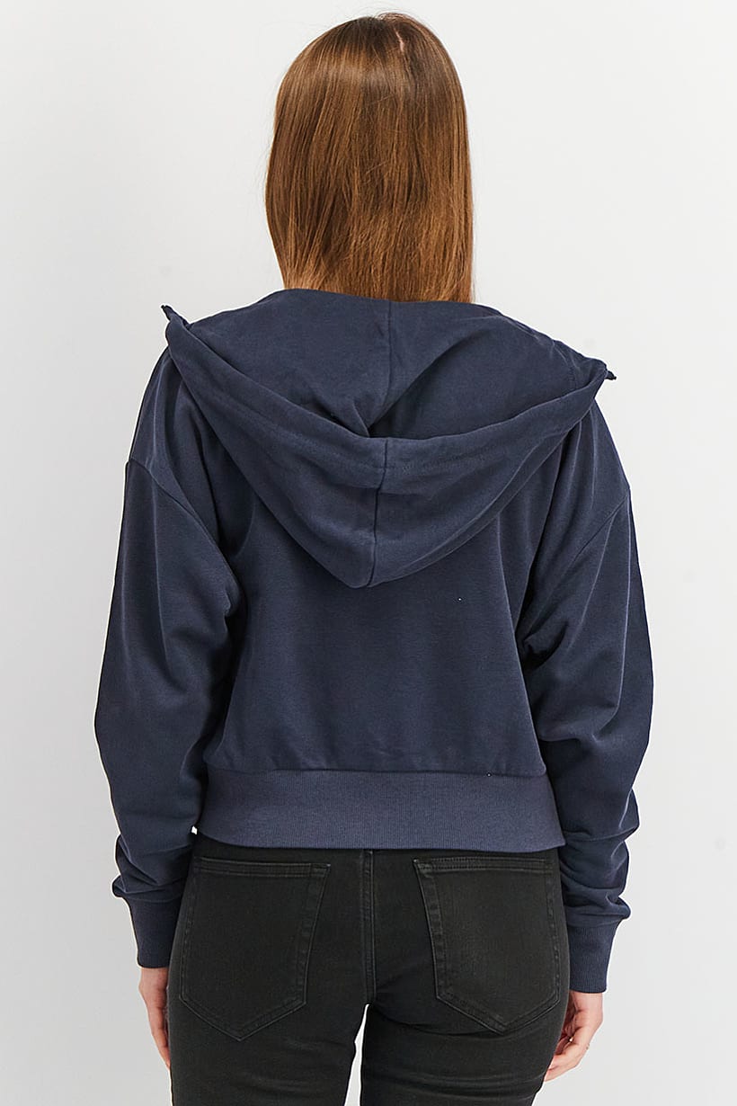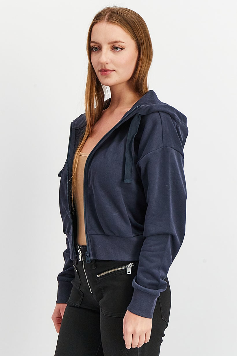 Care : Machine washable, Fit : Sportswear Fit, Ideal For : Women, Type of Sport : Training, Types of Hem : Straight hem, Disclaimer : Product color may slightly vary due to photographic lighting sources or your monitor settings., Fabrics : 75% Cotton, 25% Polyester, Pattern & Print : Plain/Solid, Sportswear Type : Jackets, Types of Closures : Zipper closure, Color Family : Navy Blue,